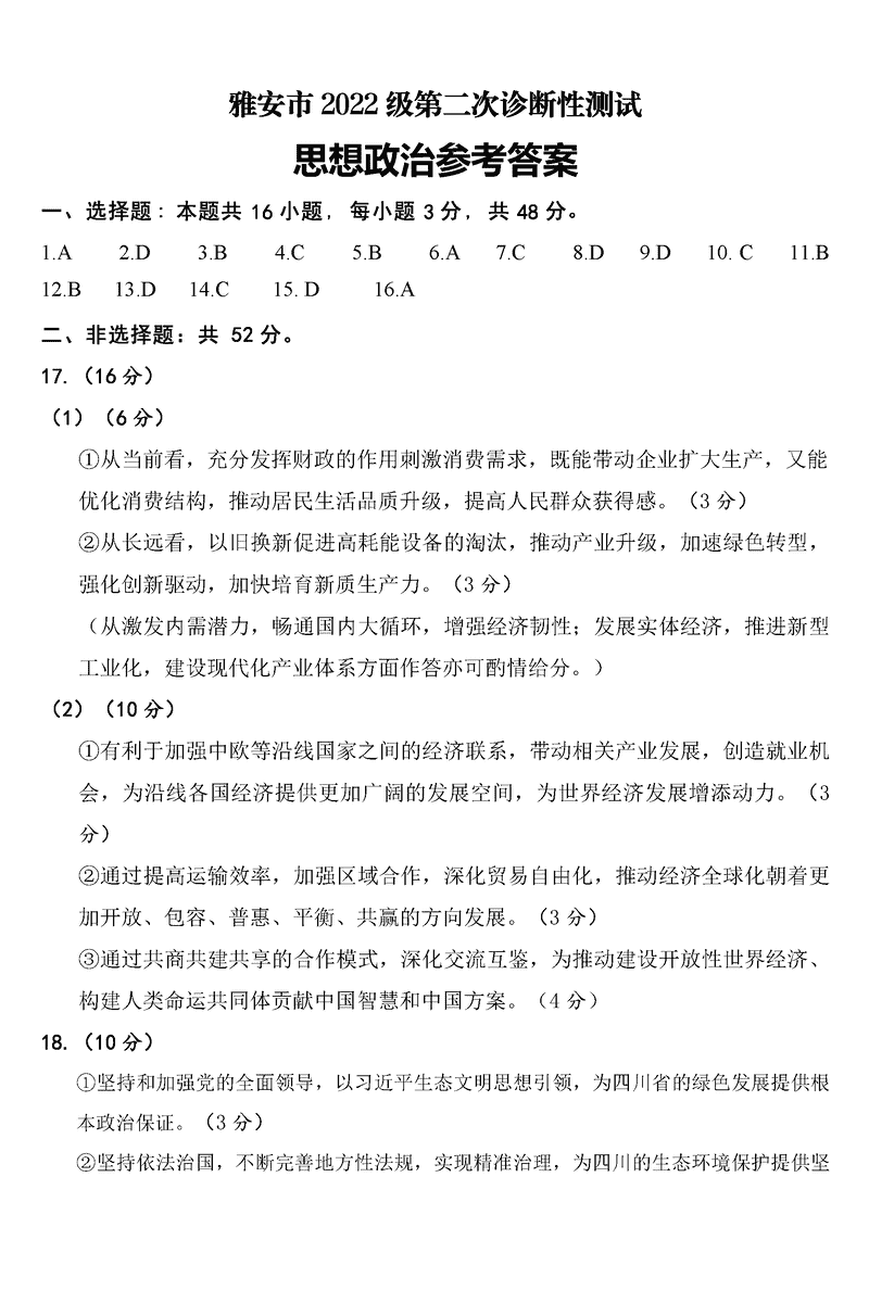 雅安市2025届高三下学期第二次诊断性政治考试已于近日开考,为方便考生考后及时查看考试情况,查漏补缺、弥补不足,本文整理了试题答案解析相关信息!