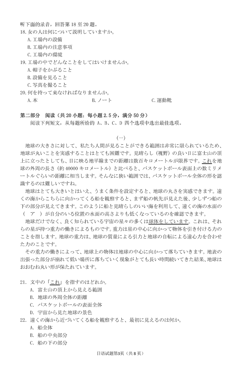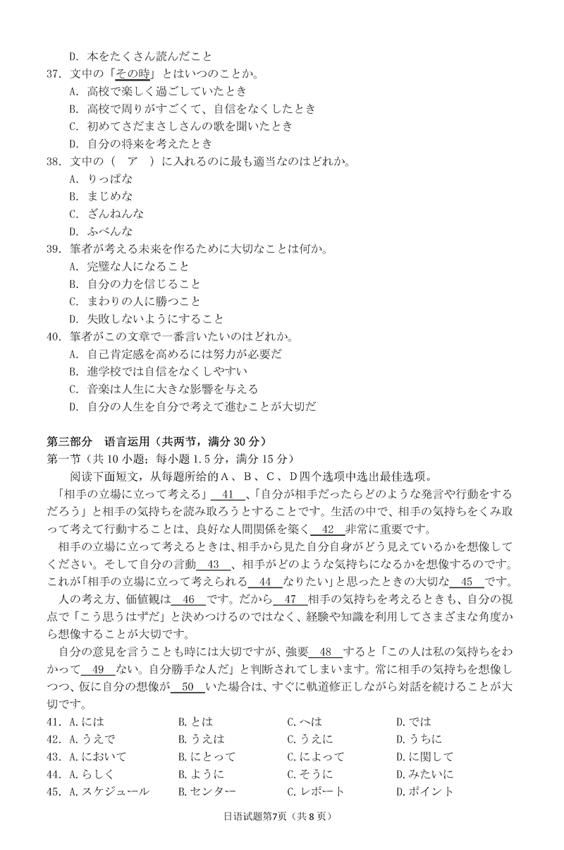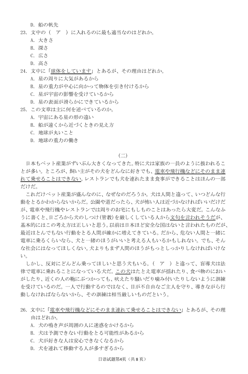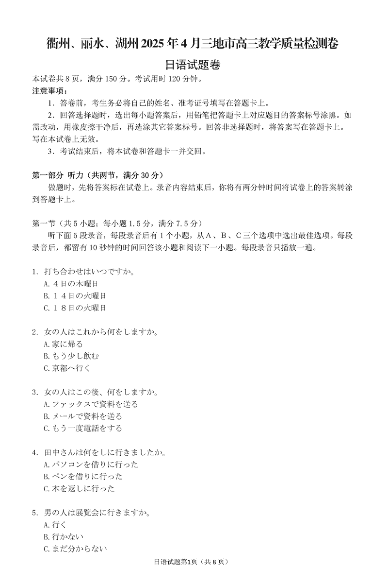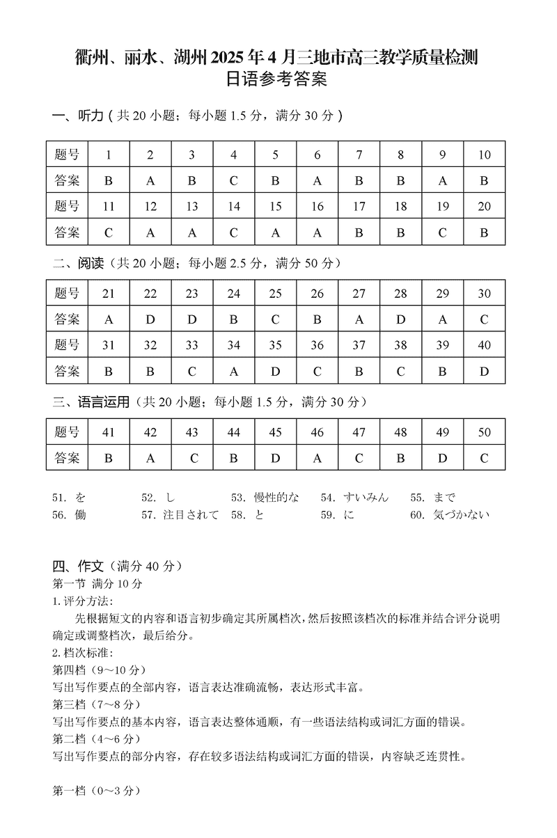 衢州、丽水、湖州三地市二模2025年4月高三教学质检日语试题及答案