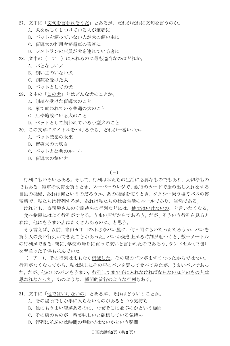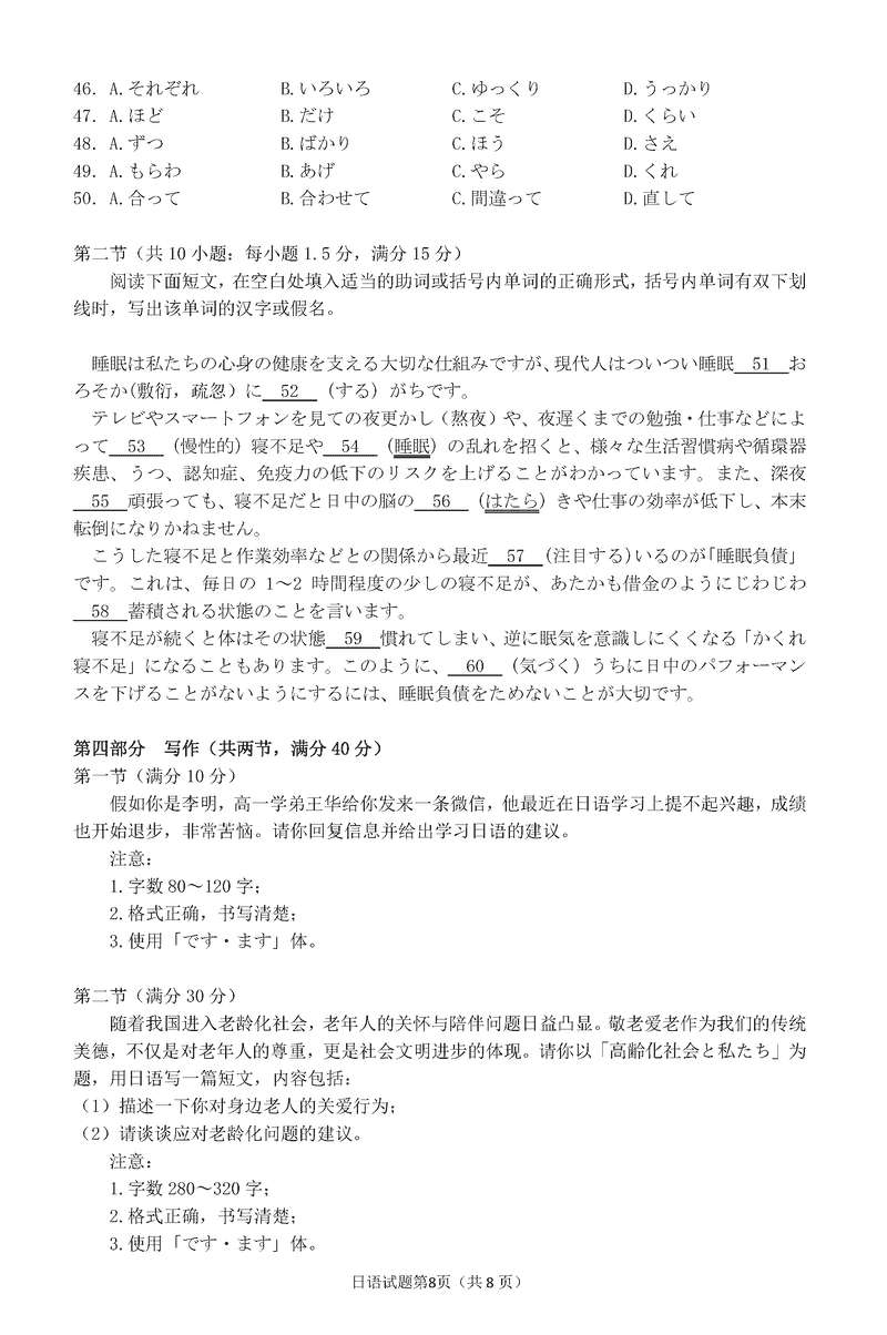 日语试题及答案解析
