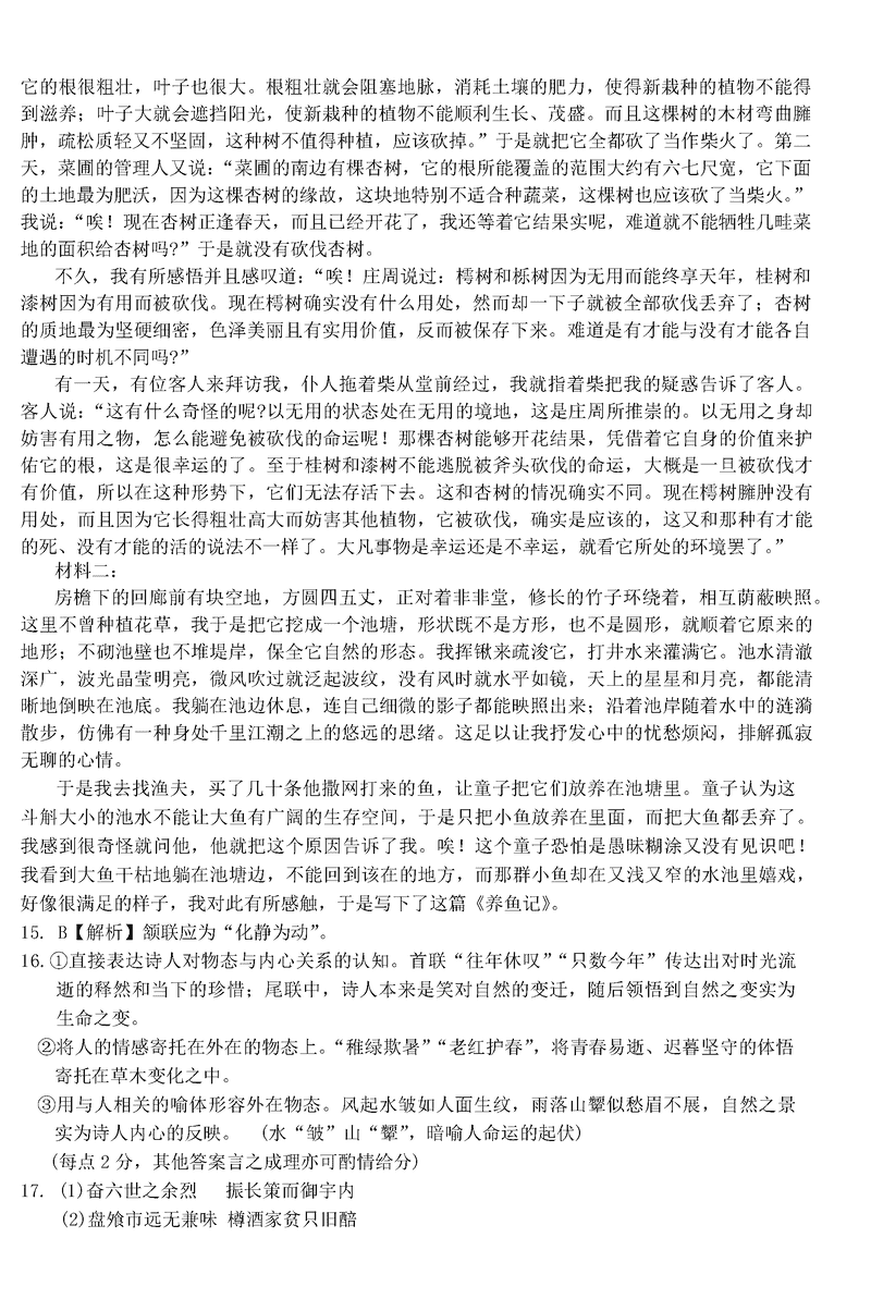 语文试题及答案解析