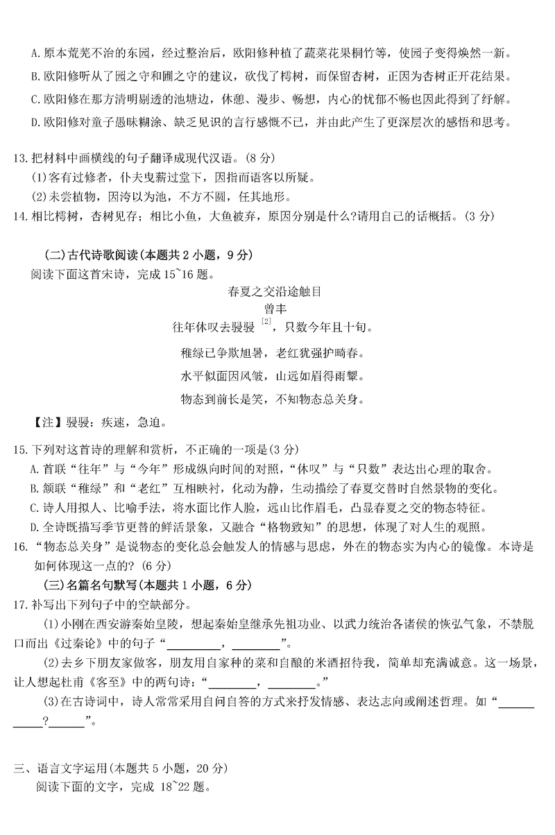 浙江 语文试题