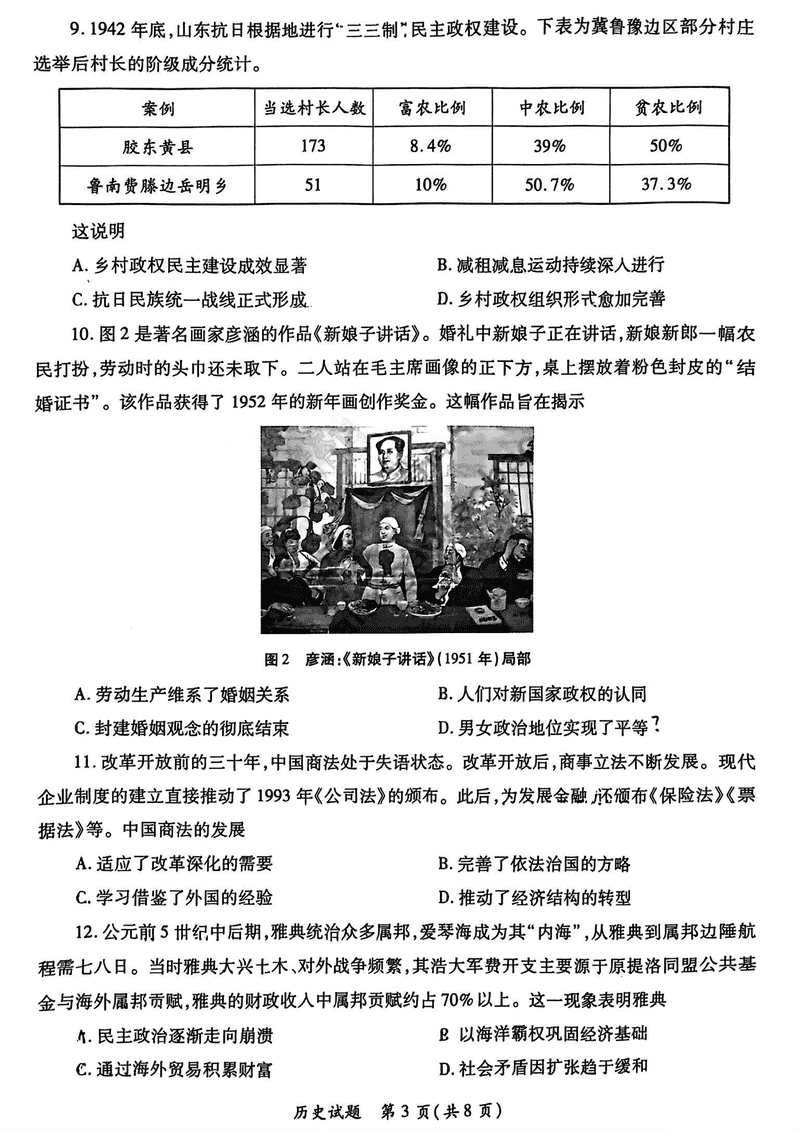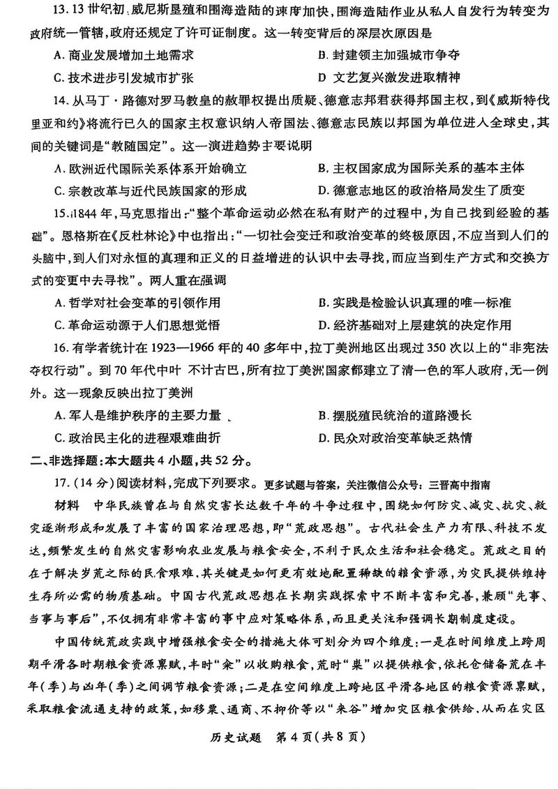2025年新高考山西、陕西两省高三4月联考历史试题及答案