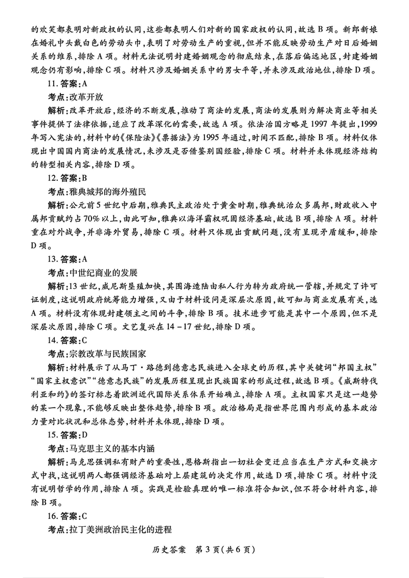 历史试题及答案解析
