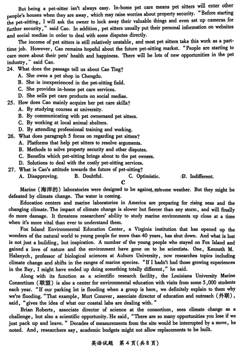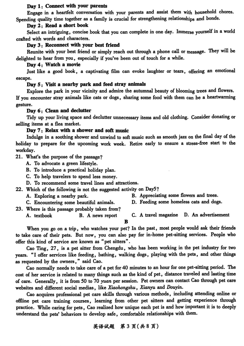 陕西 英语试题