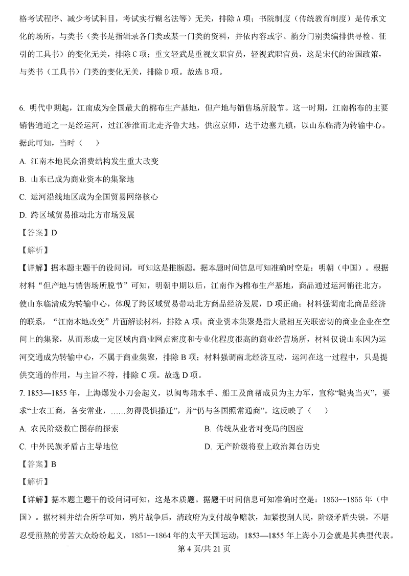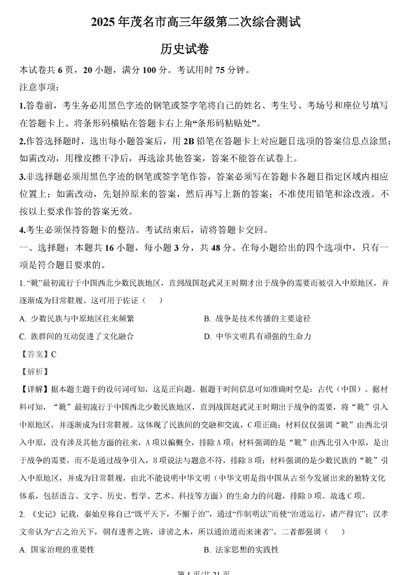 茂名二模2025年高三第二次综合测试历史试题及答案 时间:2025-04-15 广东 文综试题 茂名二模2025年高三第二次综合测试历史考试已于近日开考,为方便考生考后及时查看考试情况,查漏补缺、弥补不足,本文整理了试题答案解析相关信息! 汇总:茂名二模2025年高三第二次综合测试试题及答案汇总 历史试题及答案解析