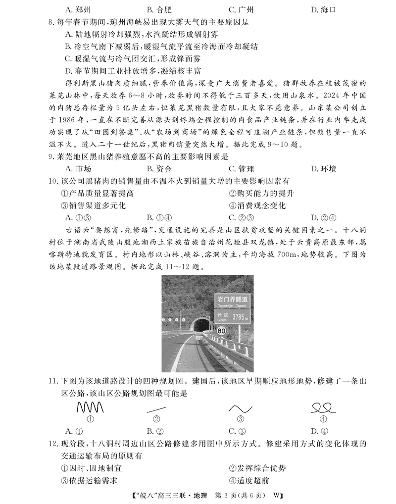 安徽皖南八校2025届高三第三次大联考地理试题及答案