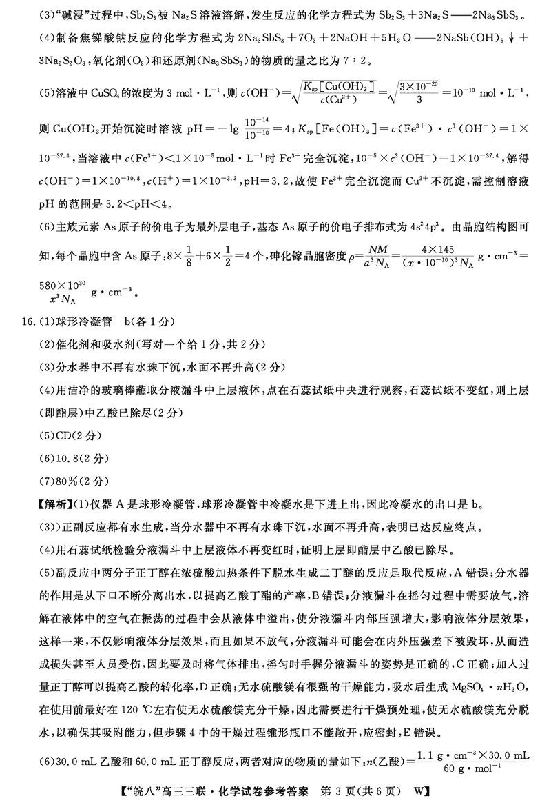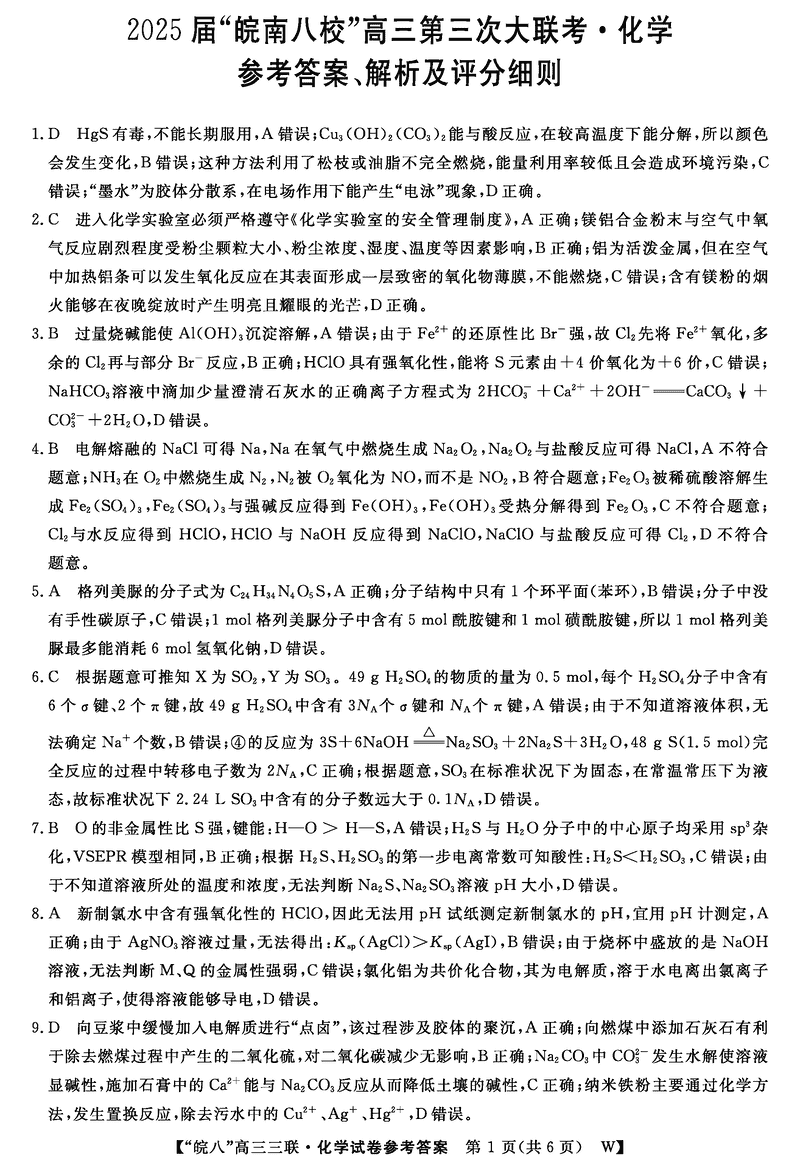 安徽皖南八校2025届高三第三次大联考化学考试已于近日开考,为方便考生考后及时查看考试情况,查漏补缺、弥补不足,本文整理了试题答案解析相关信息!