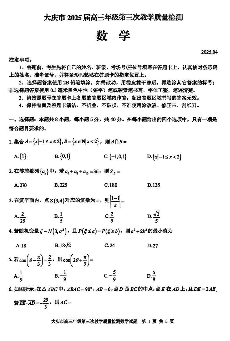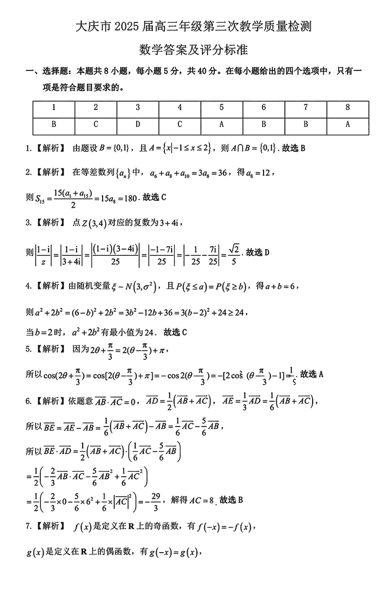 黑龙江大庆2025届高三下学期第三次模考数学考试已于近日开考,为方便考生考后及时查看考试情况,查漏补缺、弥补不足,本文整理了试题答案解析相关信息!