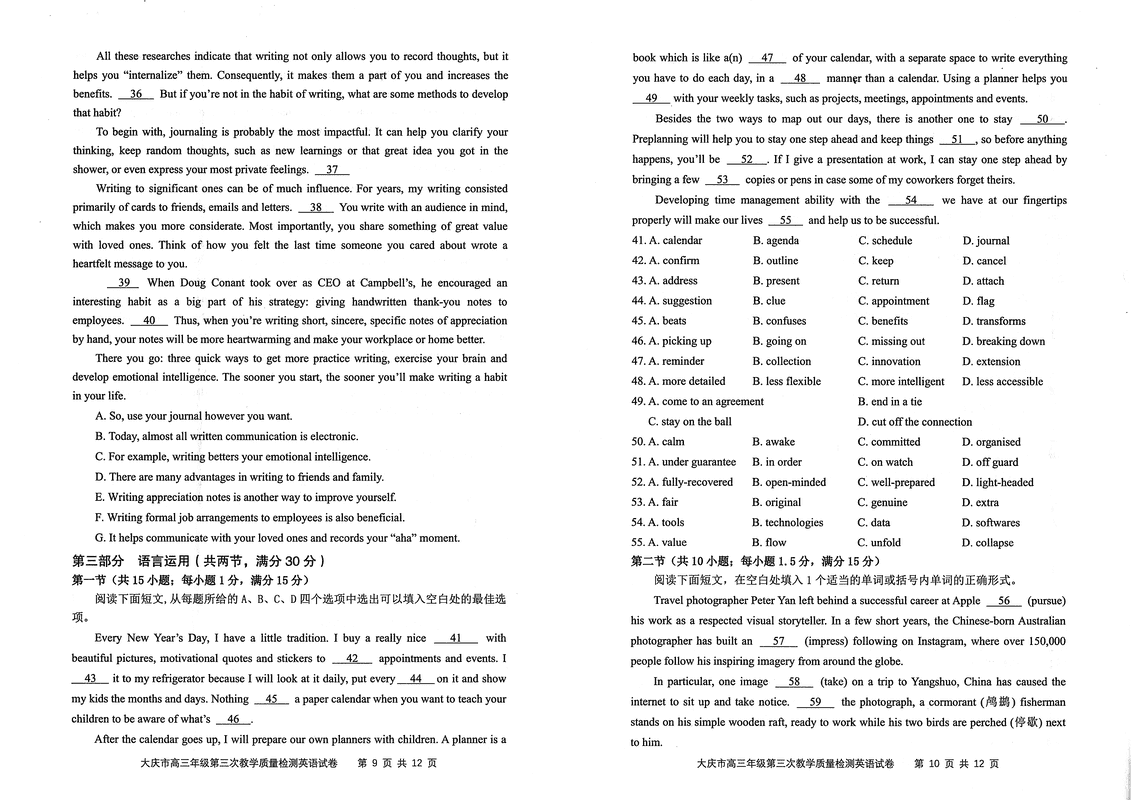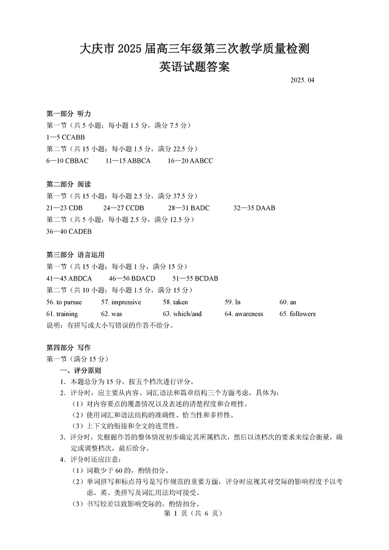 黑龙江大庆2025届高三下学期第三次模考英语考试已于近日开考,为方便考生考后及时查看考试情况,查漏补缺、弥补不足,本文整理了试题答案解析相关信息!