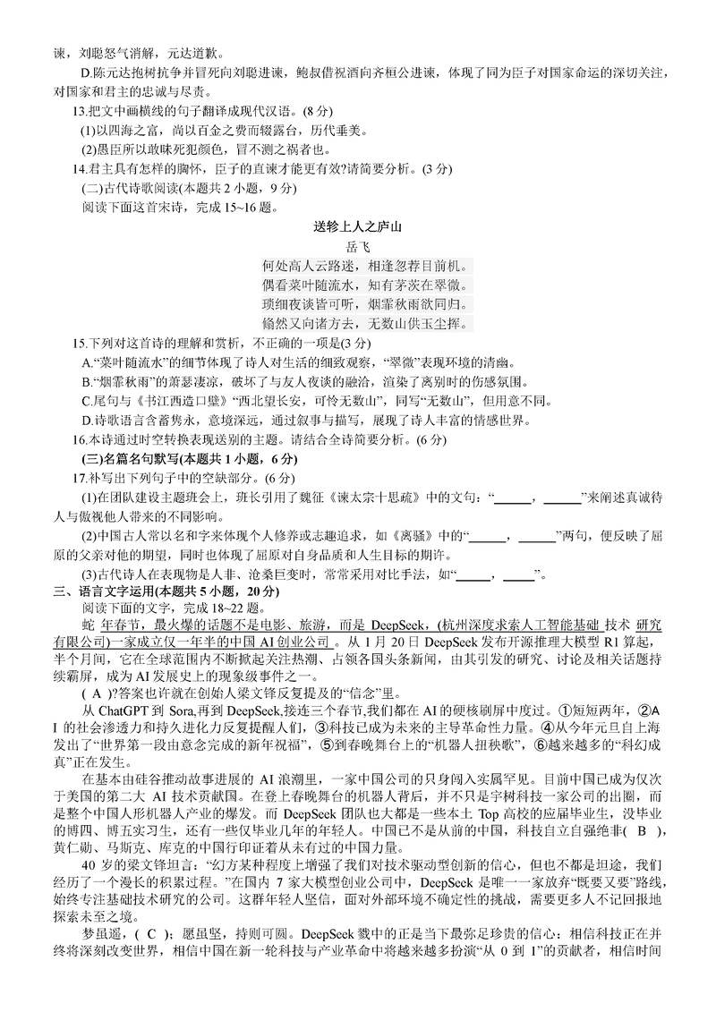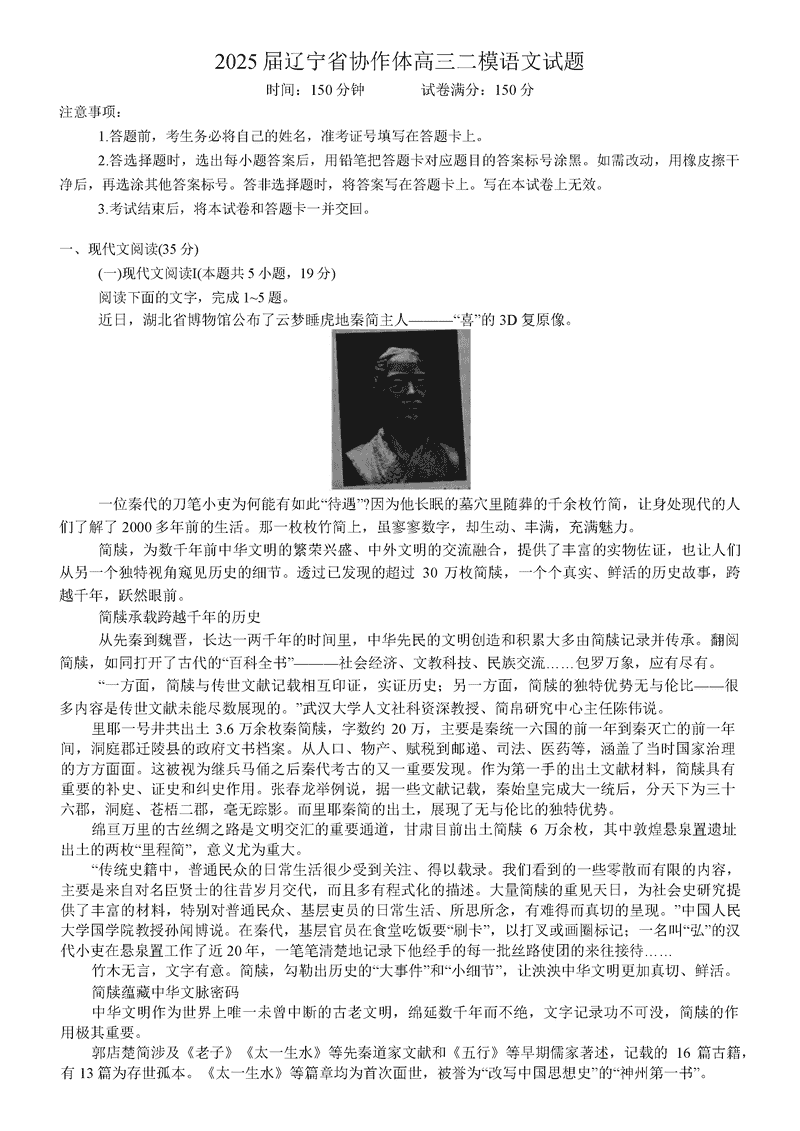辽宁协作校2025届高三第二次模拟考语文试题及答案