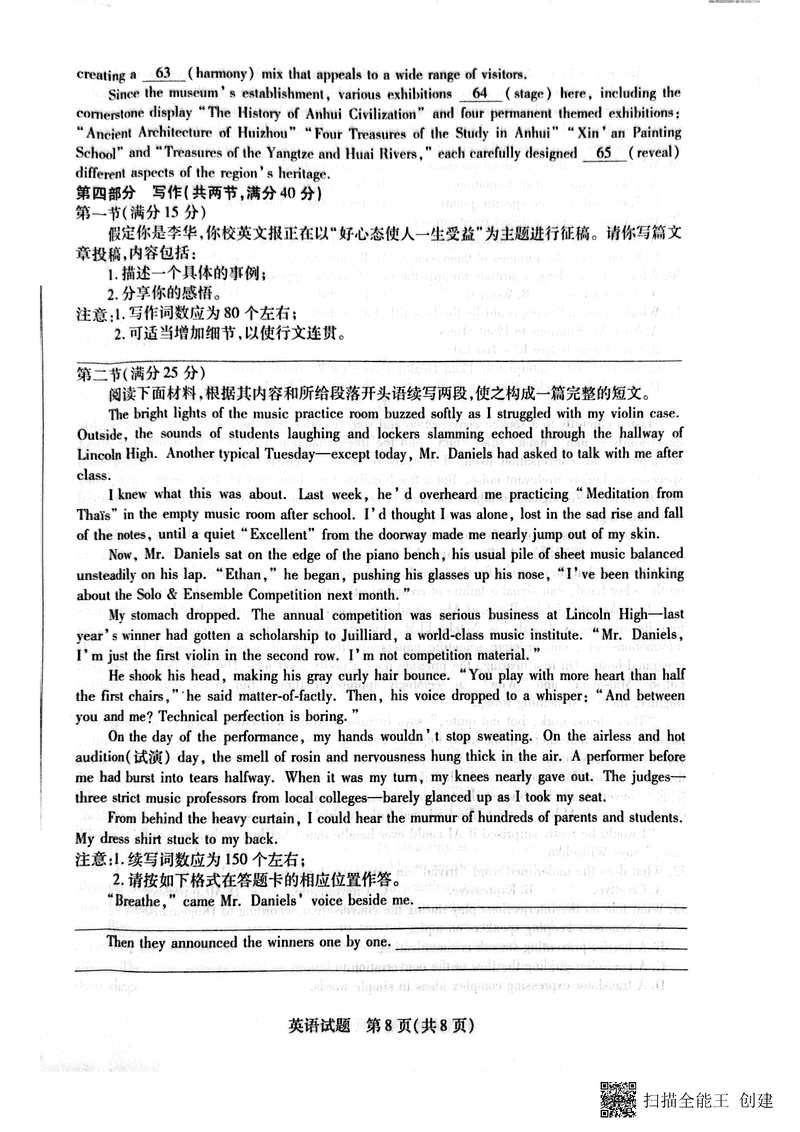 安徽省卓越县中联盟2024-2025学年高三下学期5月检测英语考试已于近日开考,为方便考生考后及时查看考试情况,查漏补缺、弥补不足,本文整理了试题答案解析相关信息!