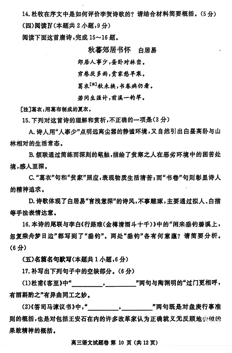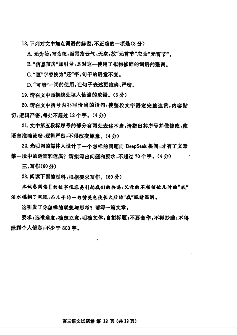 郑州市2025年高三下学期第三次质量预测语文试题及答案