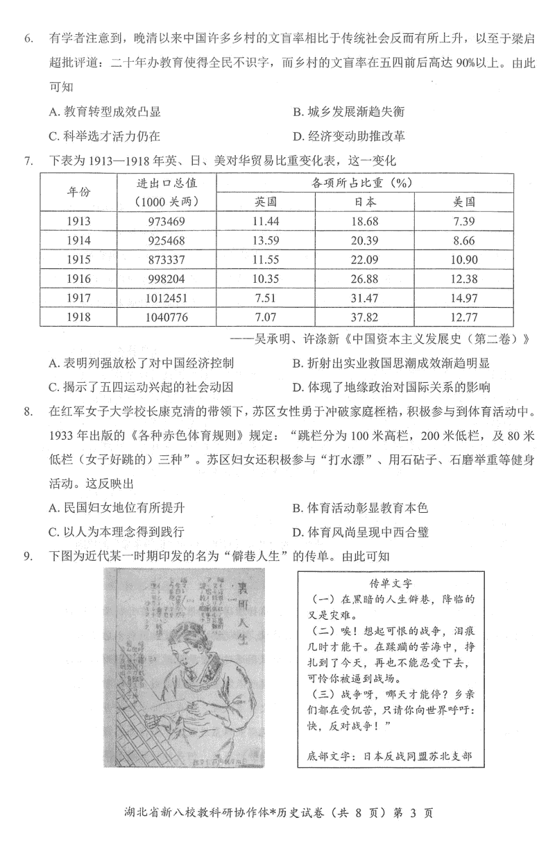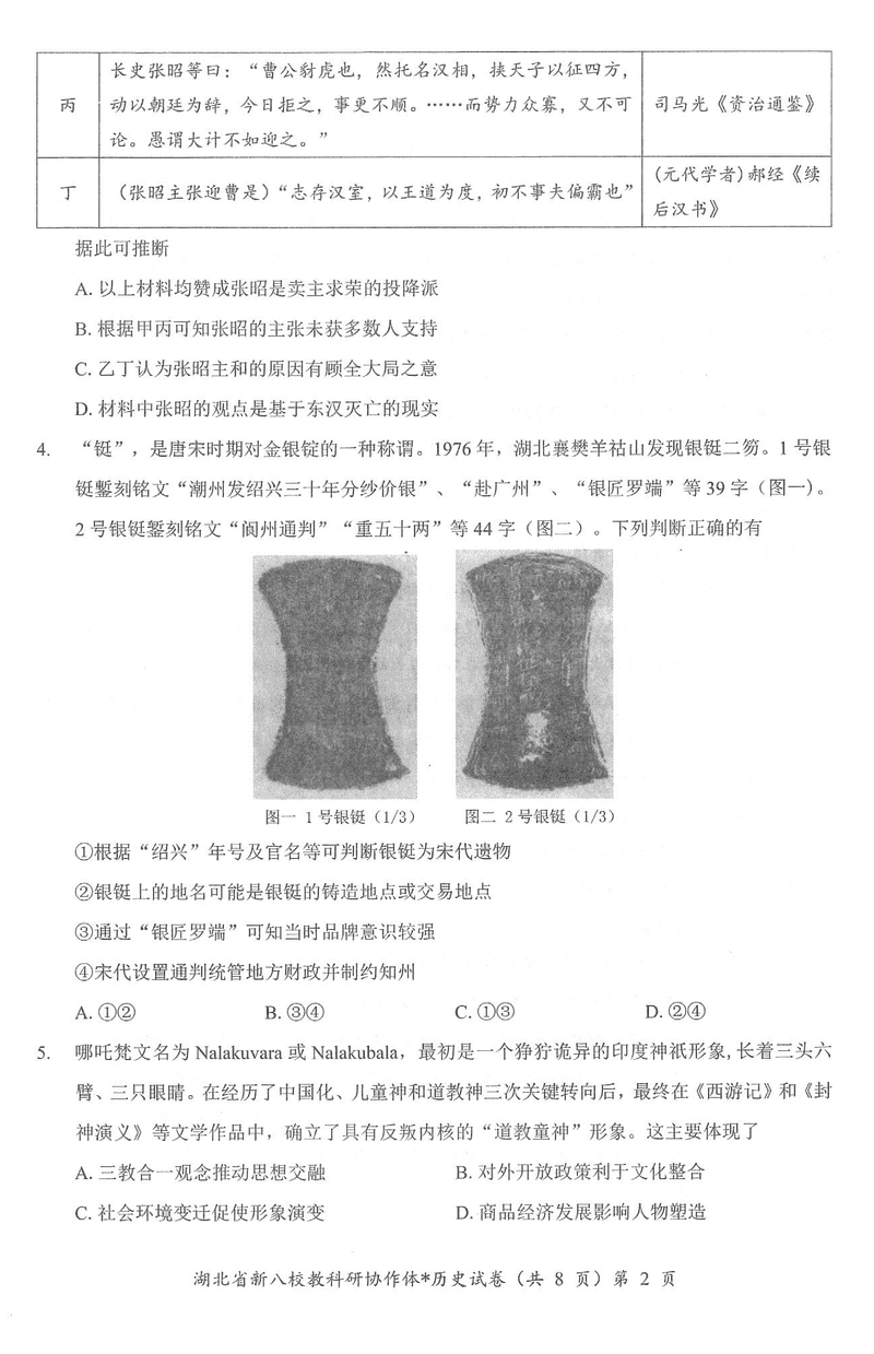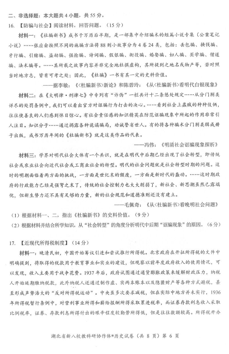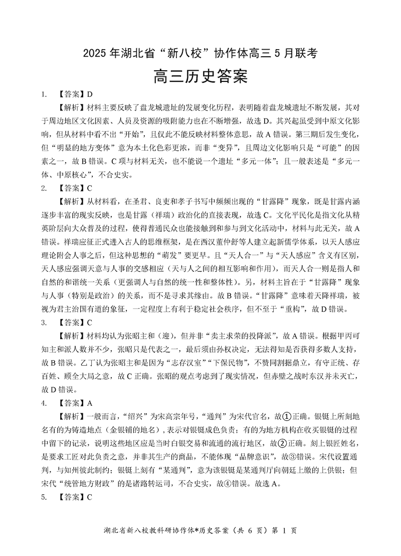 2025年湖北省新八校协作体高三5月联考历史试题及答案