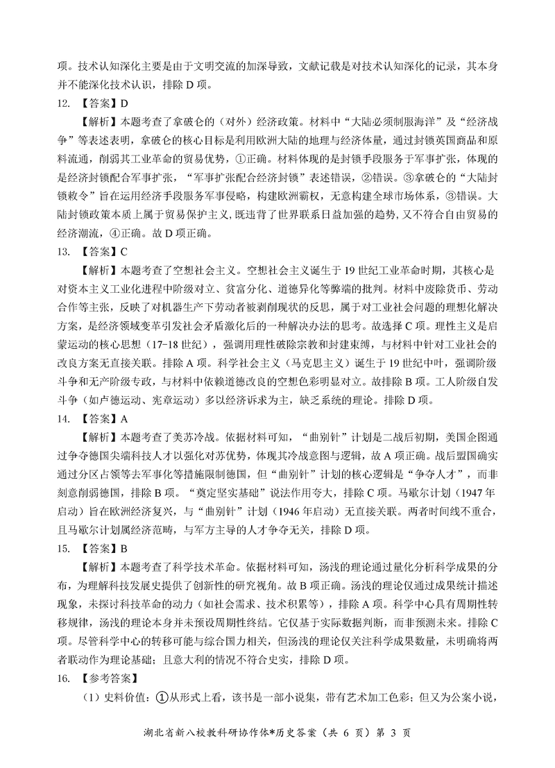 2025年湖北省新八校协作体高三5月联考历史考试已于近日开考,为方便考生考后及时查看考试情况,查漏补缺、弥补不足,本文整理了试题答案解析相关信息!