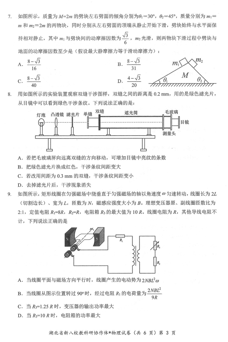 2025年湖北省新八校协作体高三5月联考物理试题及答案