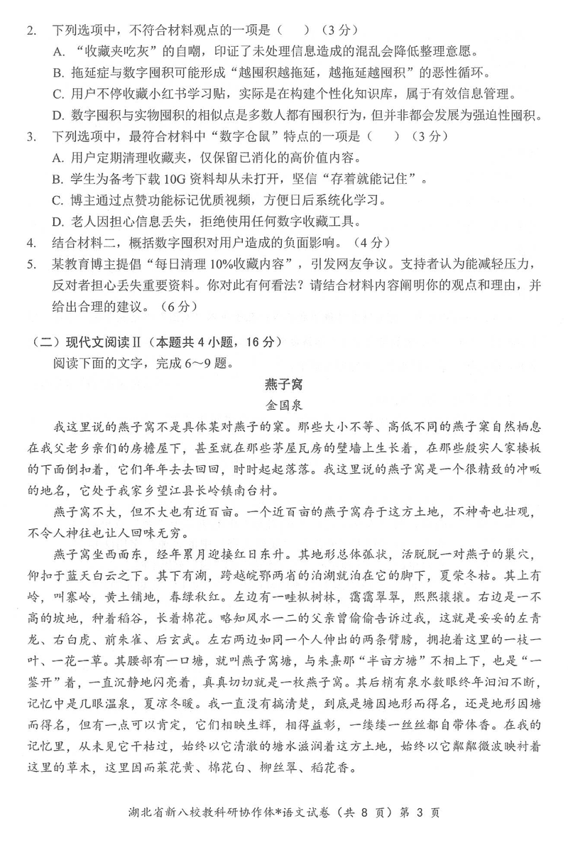 2025年湖北省新八校协作体高三5月联考语文试题及答案