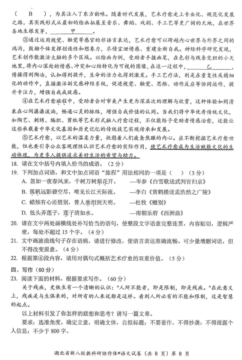 2025年湖北省新八校协作体高三5月联考语文考试已于近日开考,为方便考生考后及时查看考试情况,查漏补缺、弥补不足,本文整理了试题答案解析相关信息!