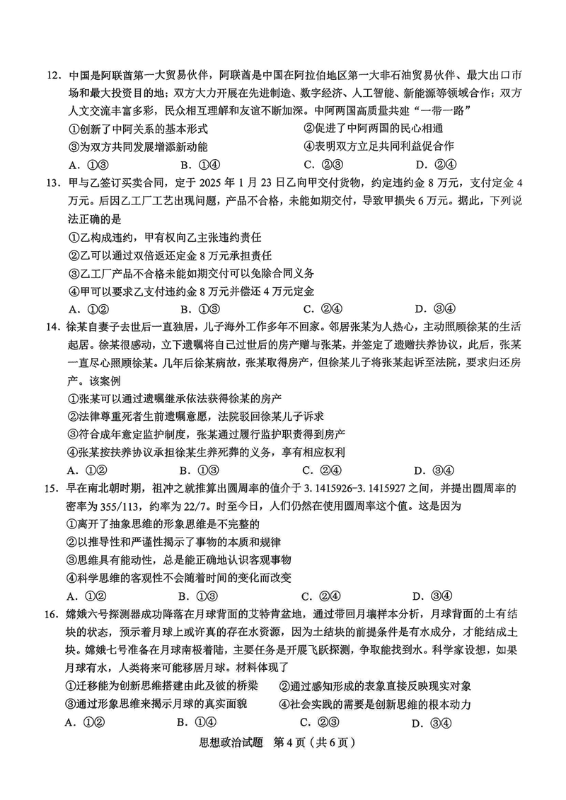 合肥三模2025届高三5月教学质量检测政治试题及答案 时间:2025-05-11 安徽 文综试题 合肥三模2025届高三5月教学质量检测政治考试已于近日开考,为方便考生考后及时查看考试情况,查漏补缺、弥补不足,本文整理了试题答案解析相关信息! 汇总:合肥三模2025届高三5月教学质量检测试题及答案汇总 政治试题及答案解析