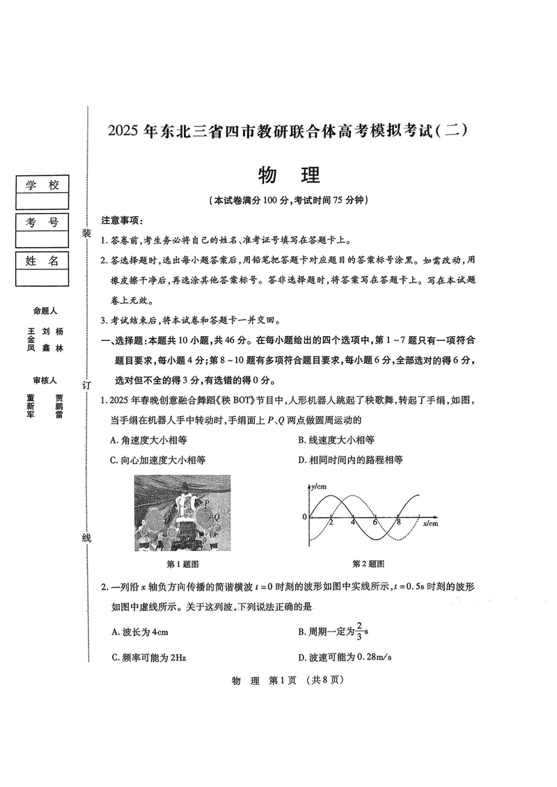 东北三省四市教研联合体2025年高考模拟试题(二)物理试题及答案