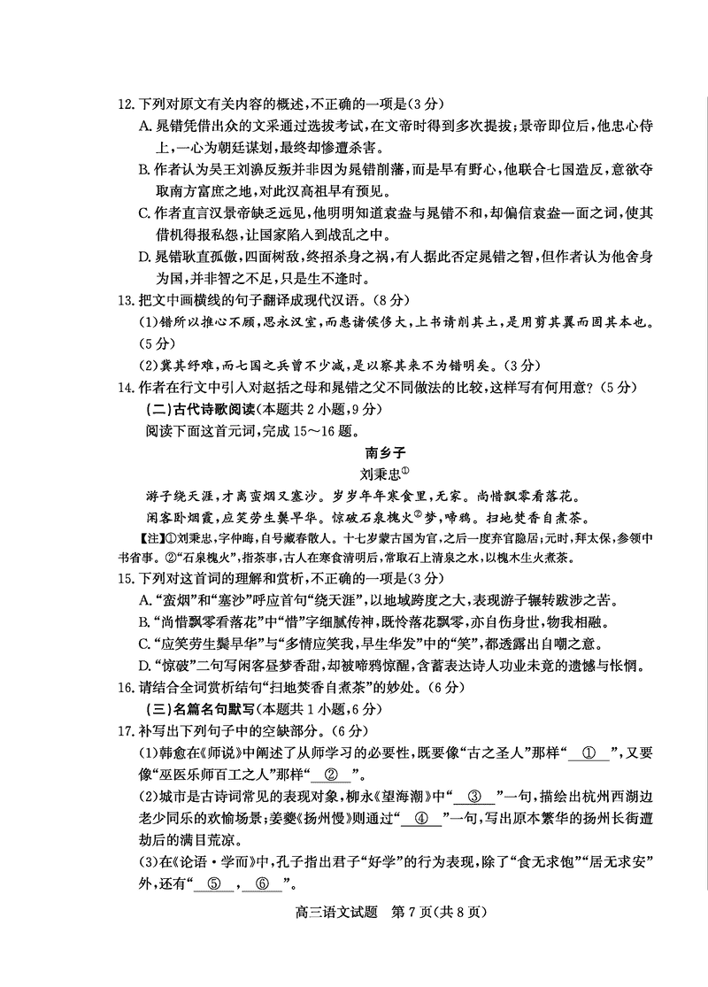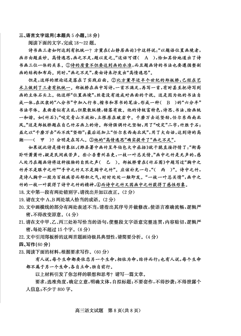 烟台、德州二模2025届高三高考适应性测试语文试题及答案