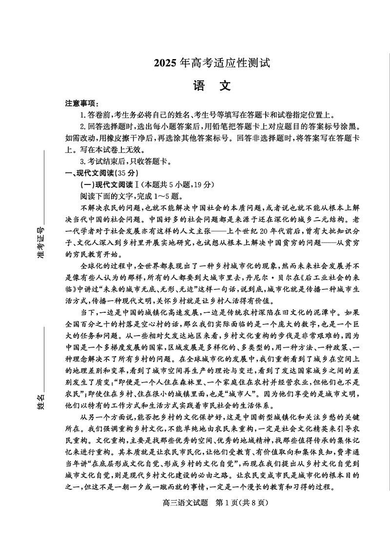 烟台、德州二模2025届高三高考适应性测试语文考试已于近日开考,为方便考生考后及时查看考试情况,查漏补缺、弥补不足,本文整理了试题答案解析相关信息!