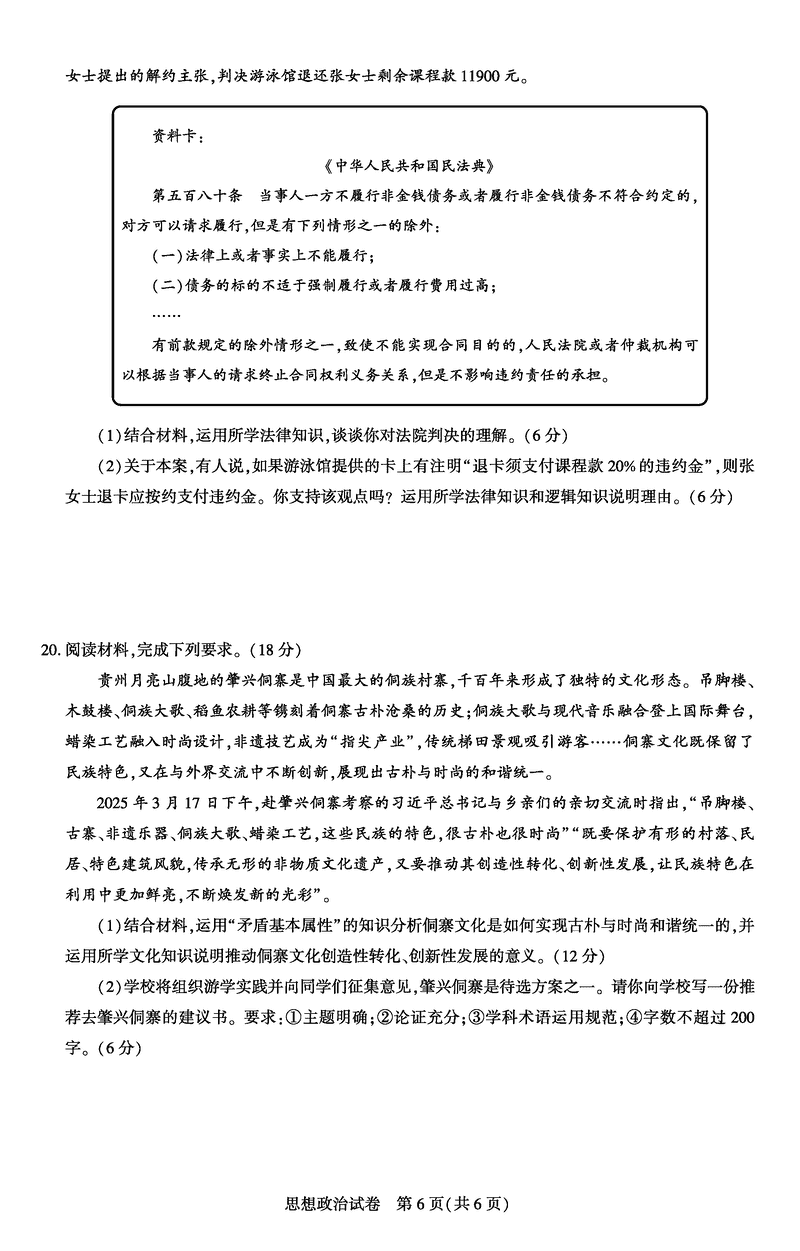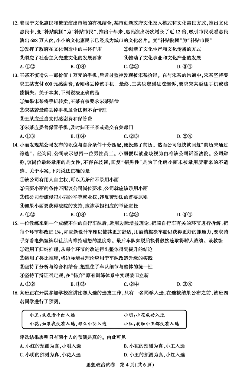 湖北圆创名校联盟2025届高三第四次联合测评政治试题及答案