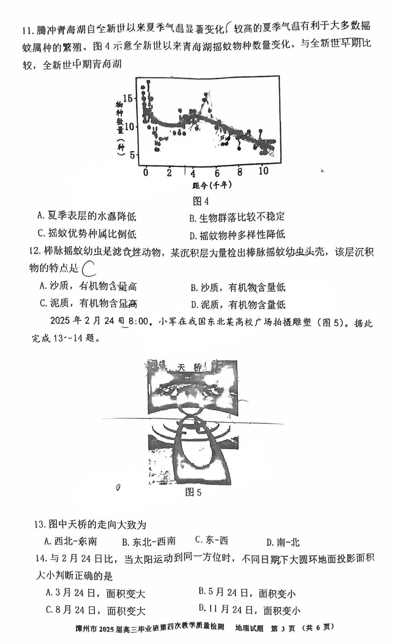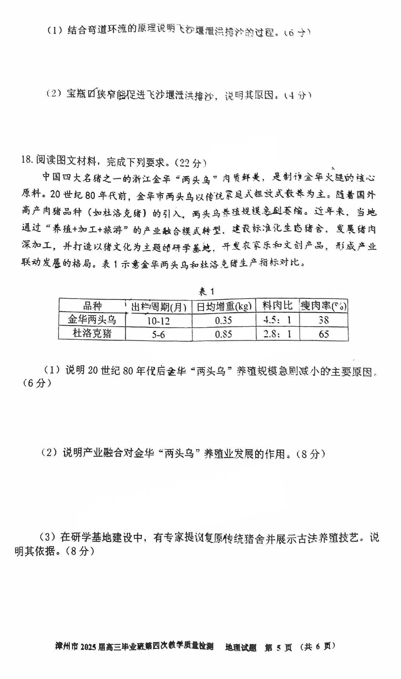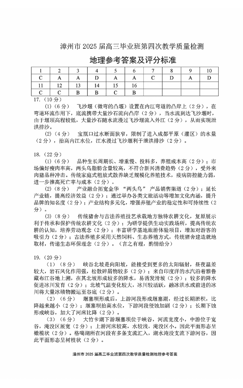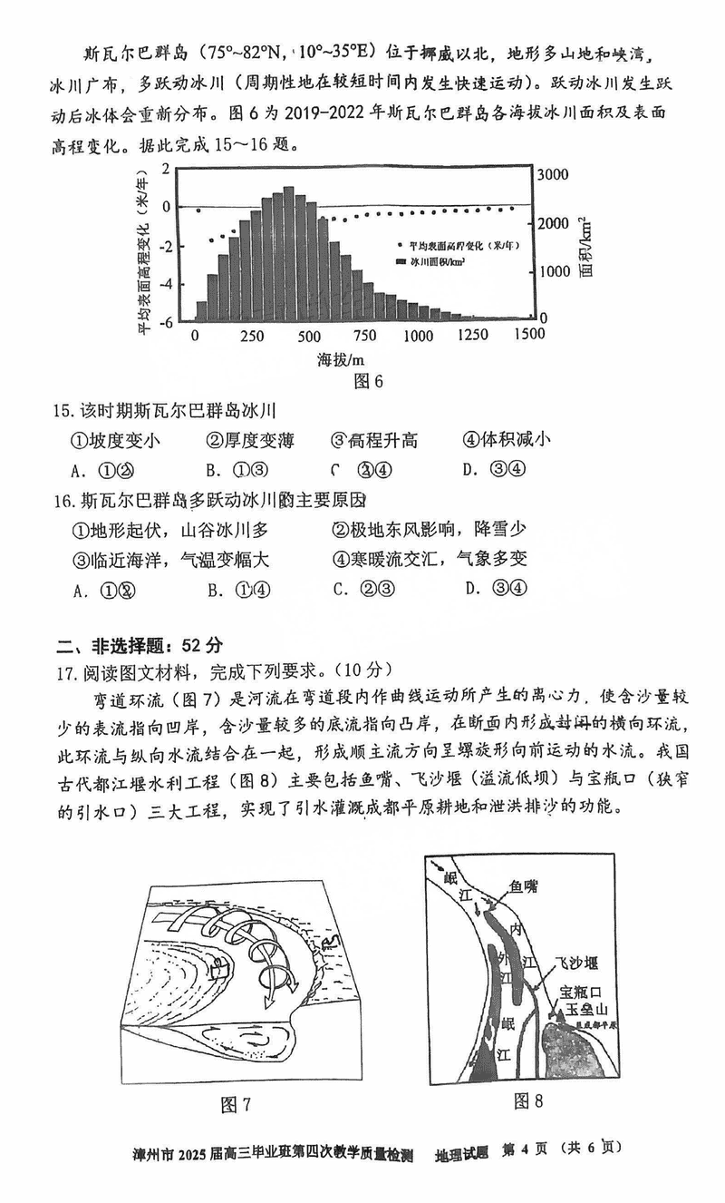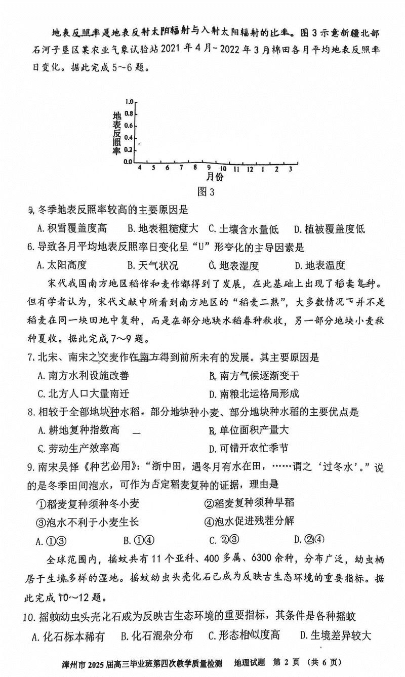 漳州四检2025届高三第四次教学质检地理试题及答案