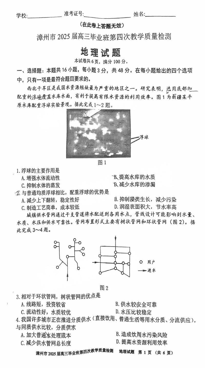 漳州四检2025届高三第四次教学质检地理考试已于近日开考,为方便考生考后及时查看考试情况,查漏补缺、弥补不足,本文整理了试题答案解析相关信息!