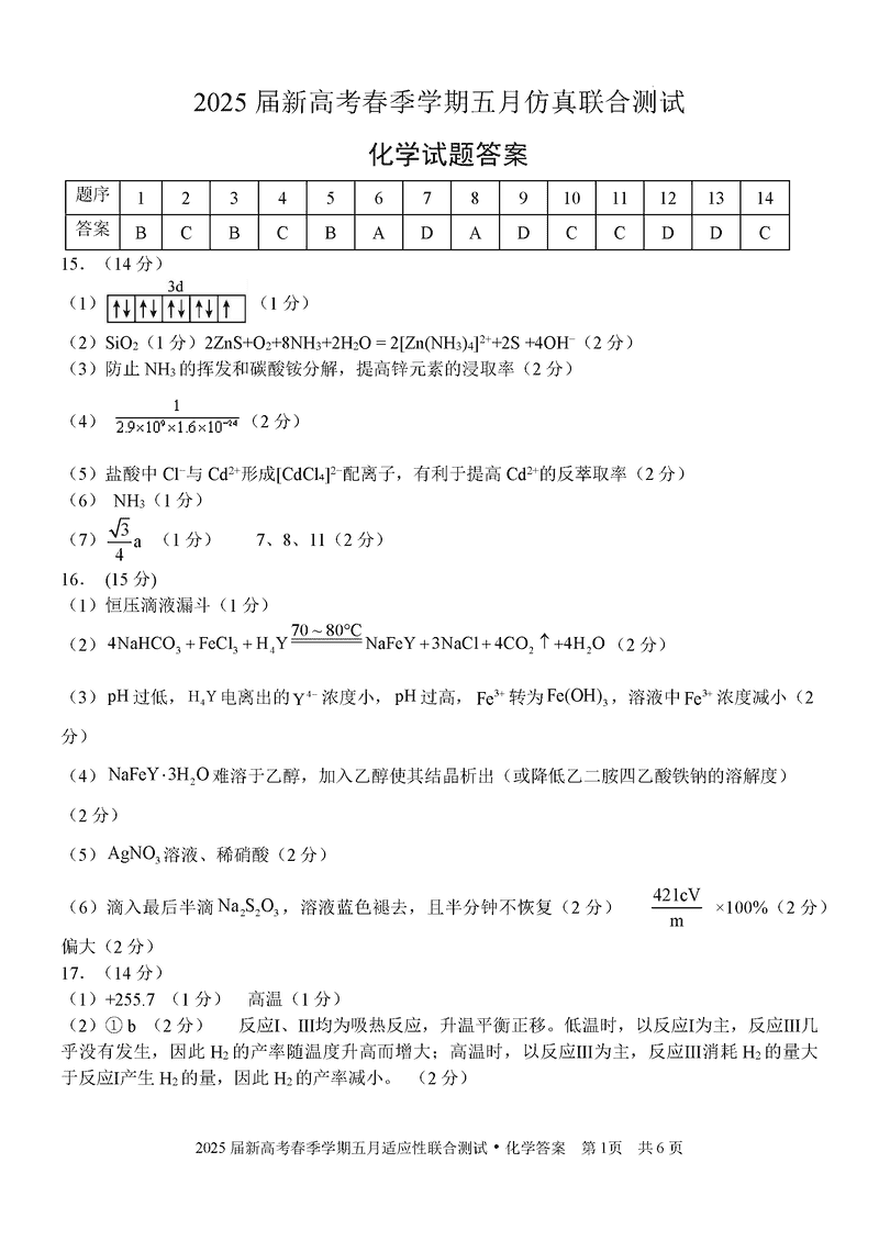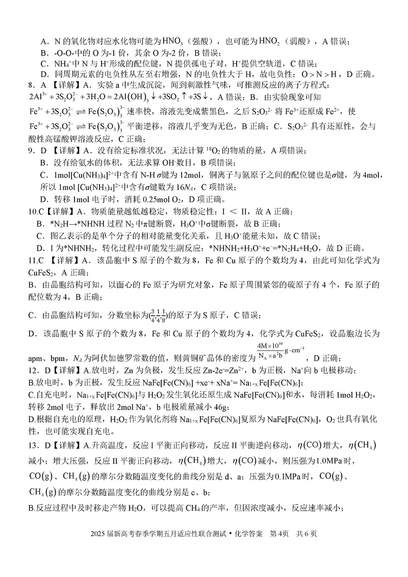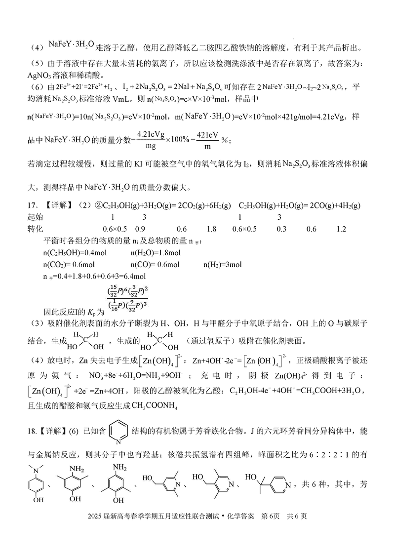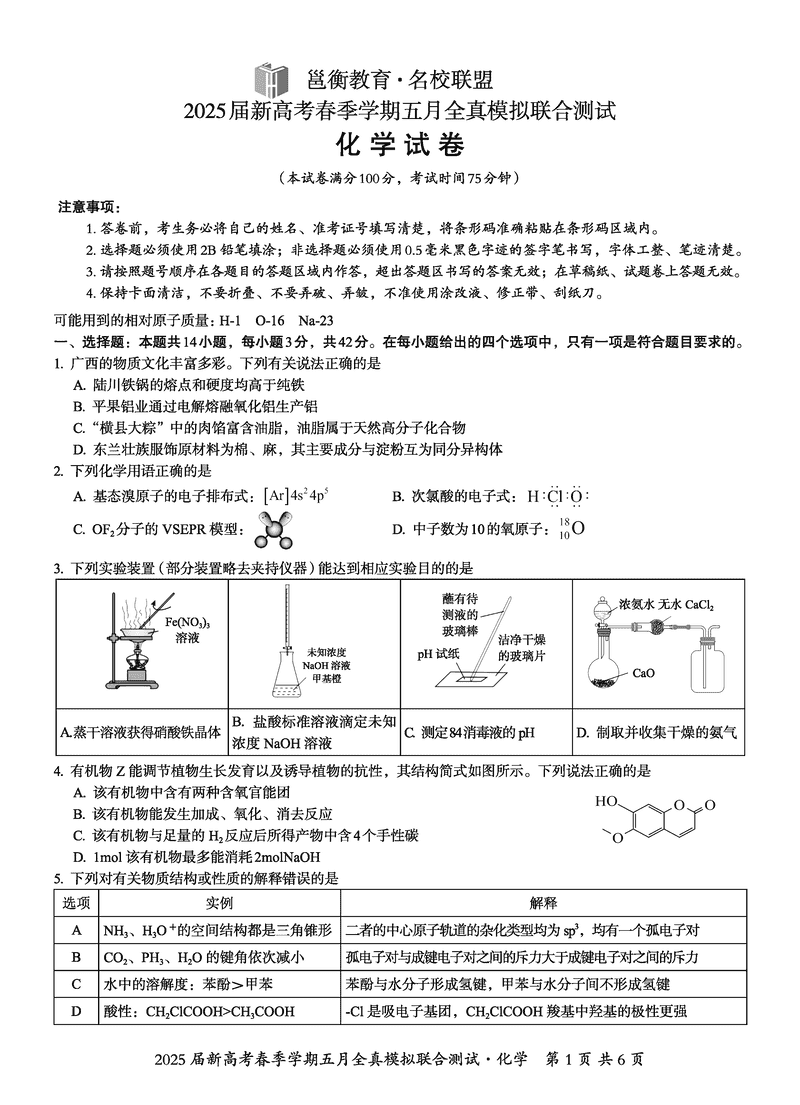 2025届广西邕衡教育名校联盟高三5月全真模拟测试化学试题及答案