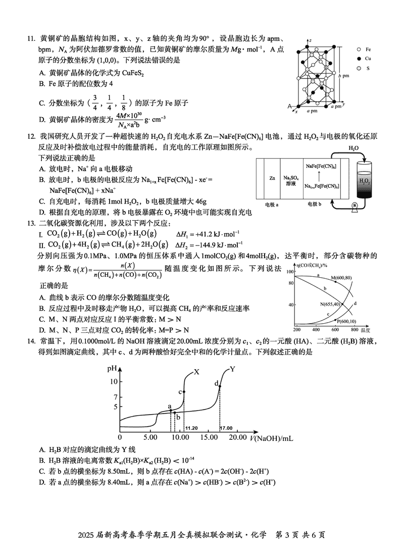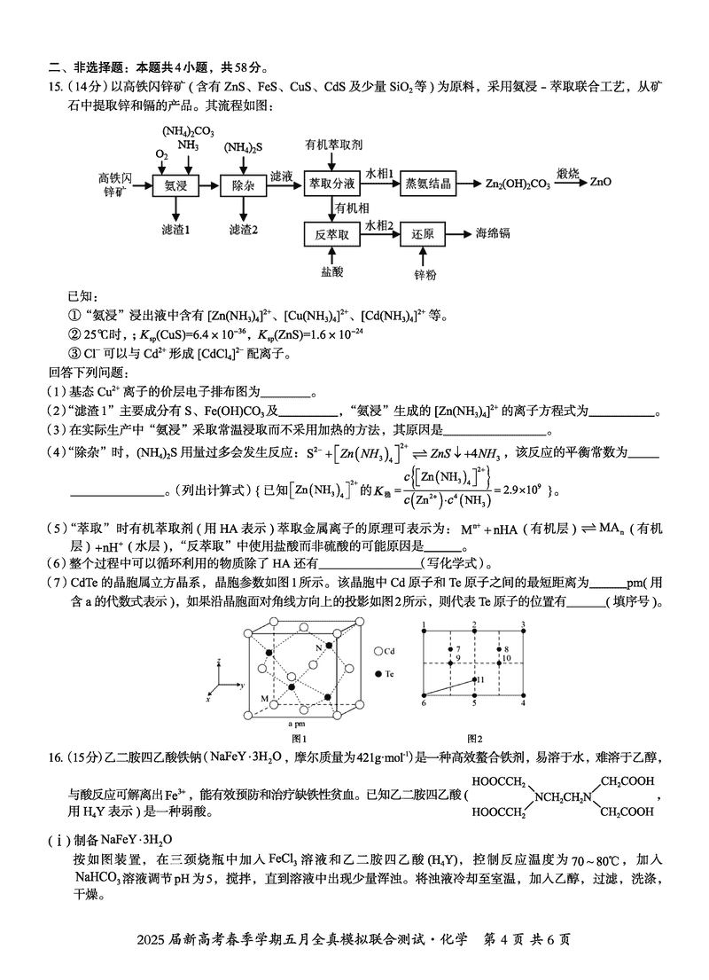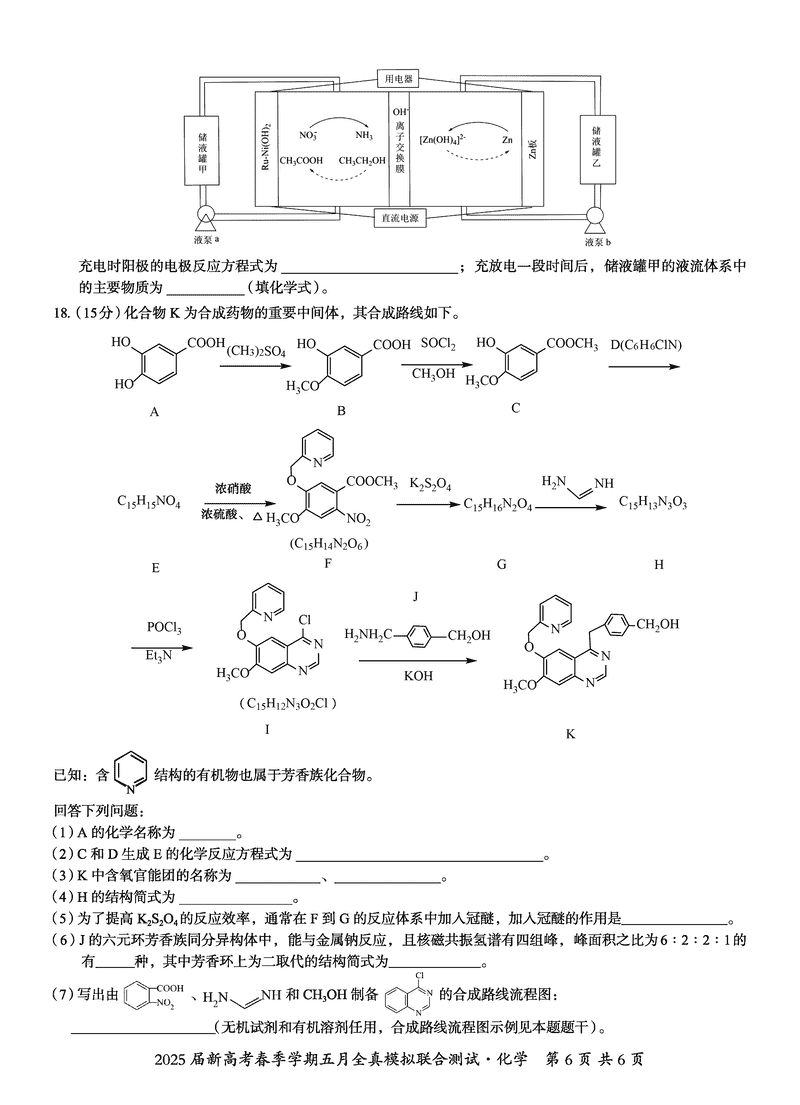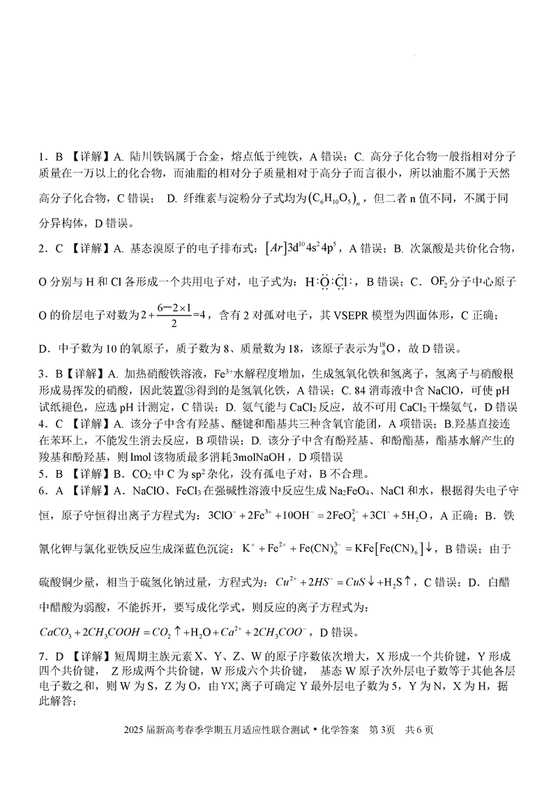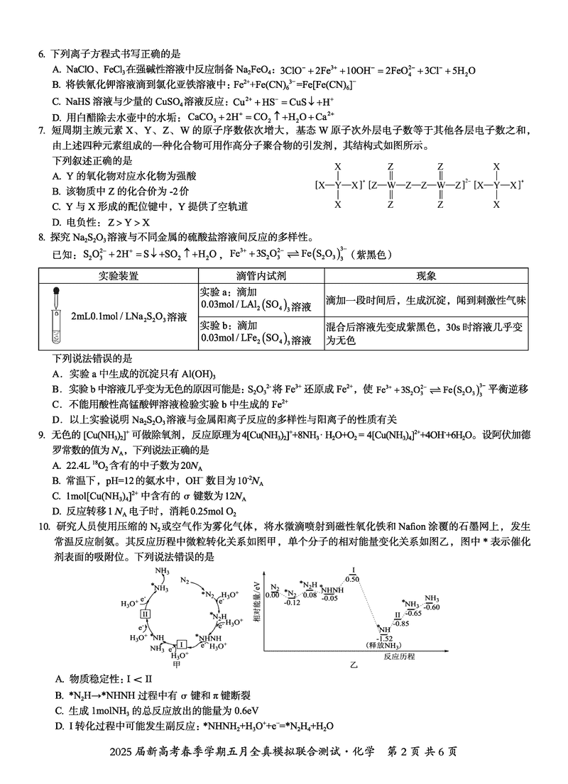 2025届广西邕衡教育名校联盟高三5月全真模拟测试化学试题及答案