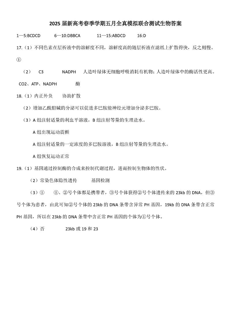 2025届广西邕衡教育名校联盟高三5月全真模拟测试生物试题及答案