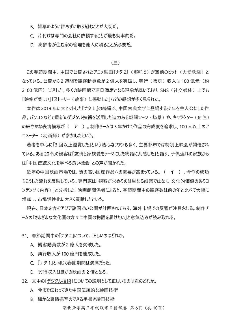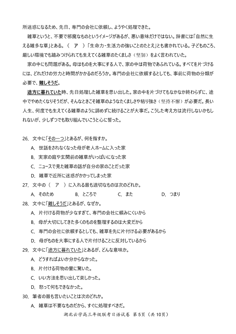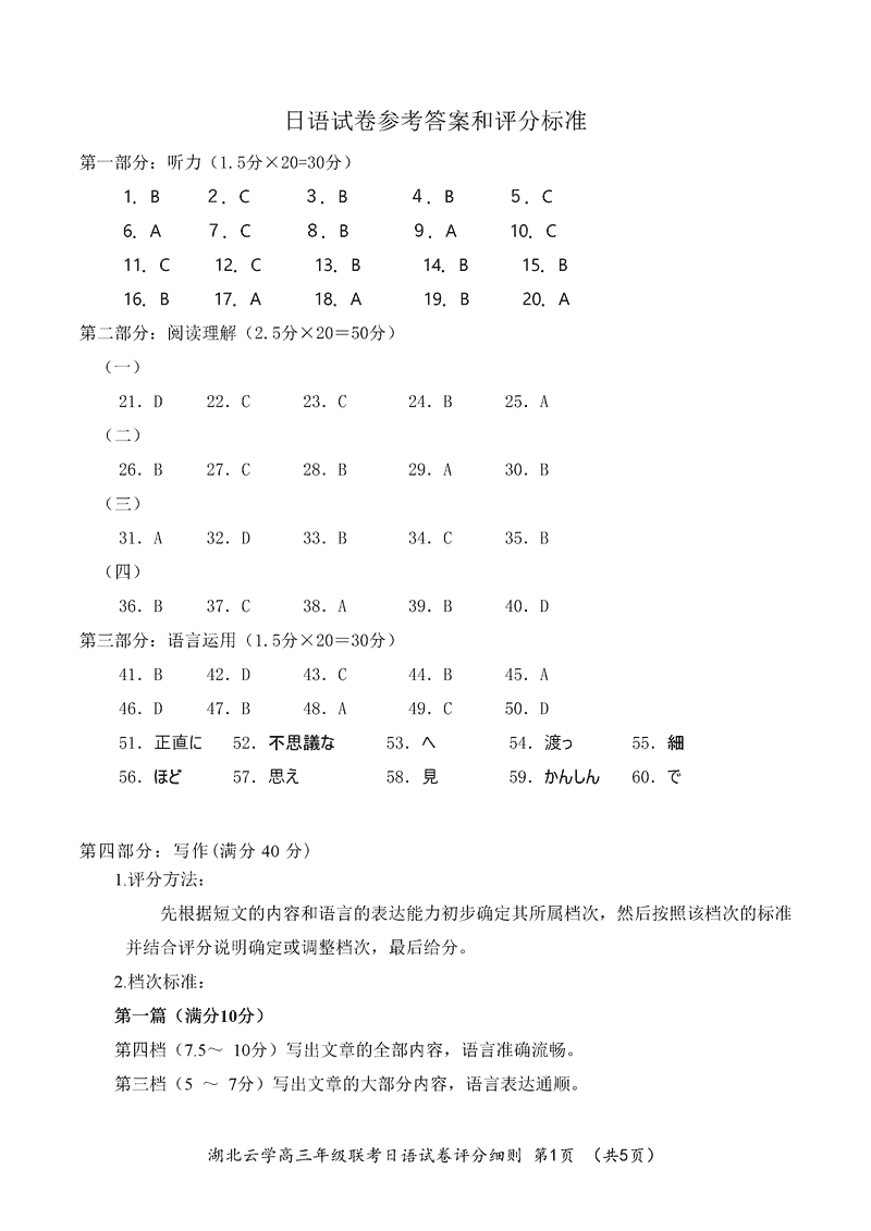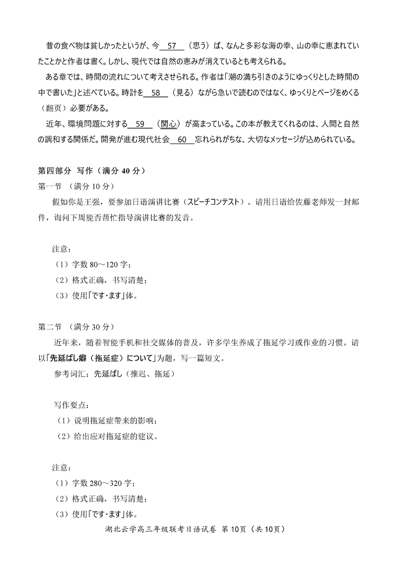 湖北鄂东南2025年春季高三五月模拟考日语试题及答案