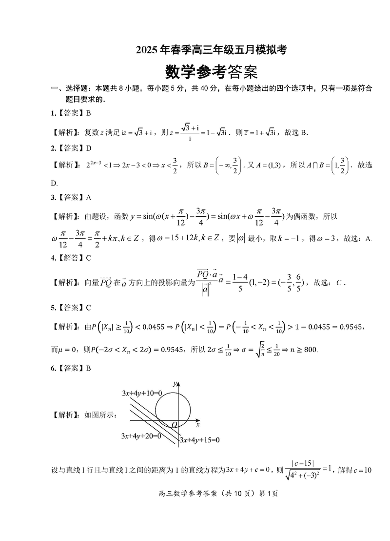 湖北鄂东南2025年春季高三五月模拟考数学试题及答案