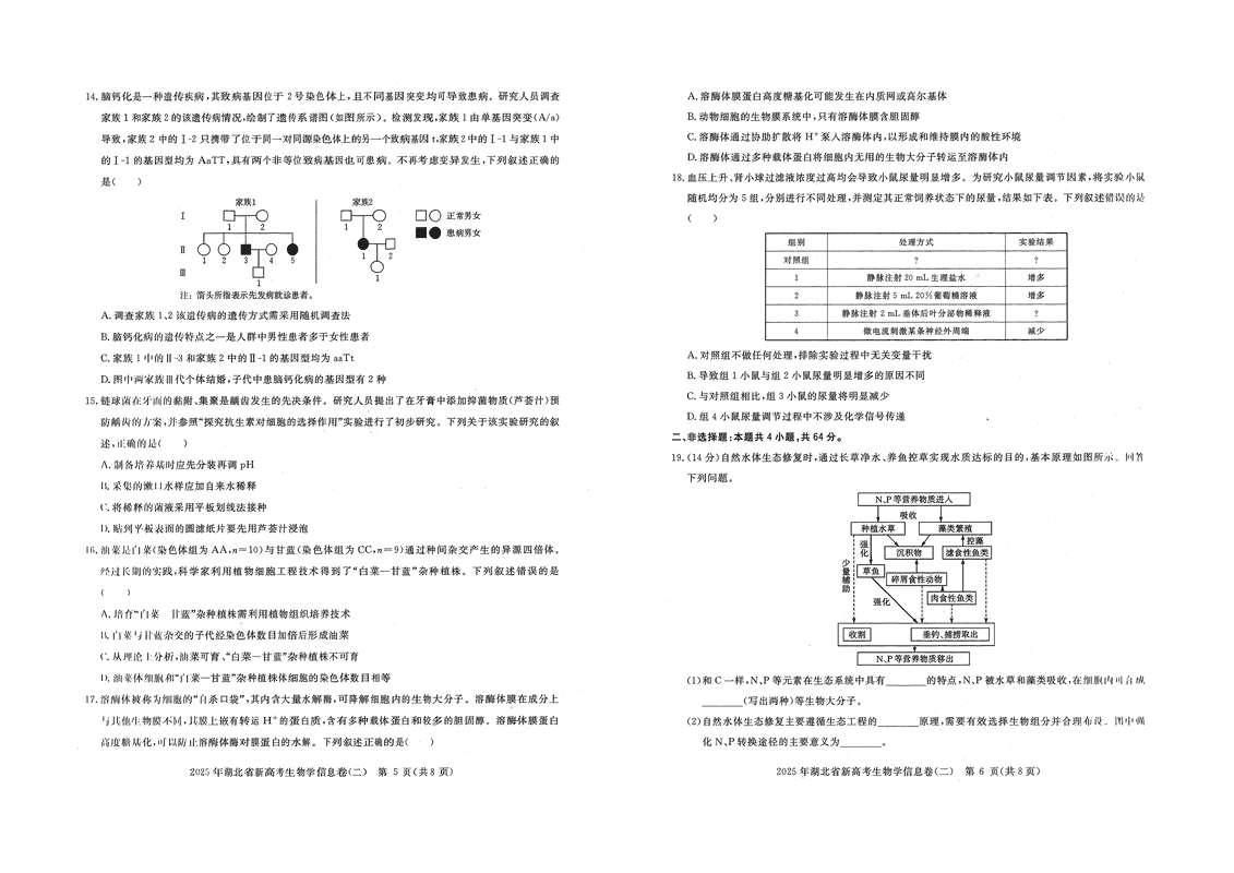2025年湖北省新高考信息卷(二)生物试题及答案 时间:2025-05-14 湖北 理综试题 2025年湖北省新高考信息卷(二)生物考试已于近日开考,为方便考生考后及时查看考试情况,查漏补缺、弥补不足,本文整理了试题答案解析相关信息! 汇总:2025年湖北省新高考信息卷(二)试题及答案汇总 生物试题及答案解析