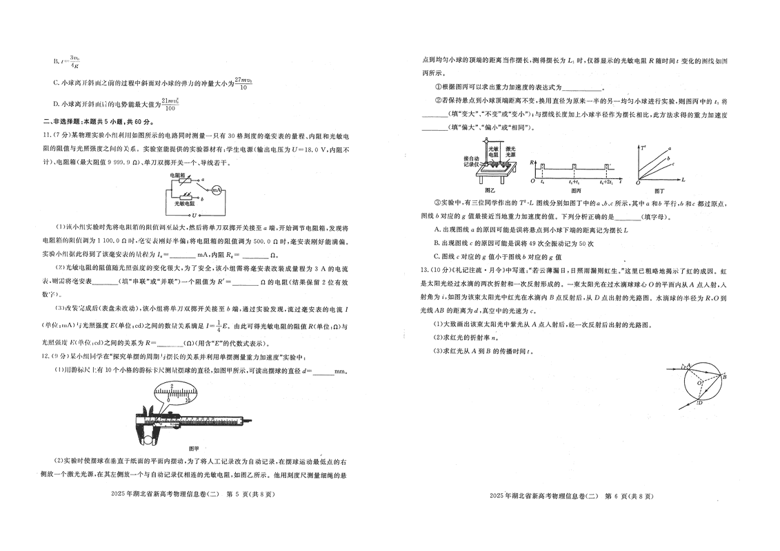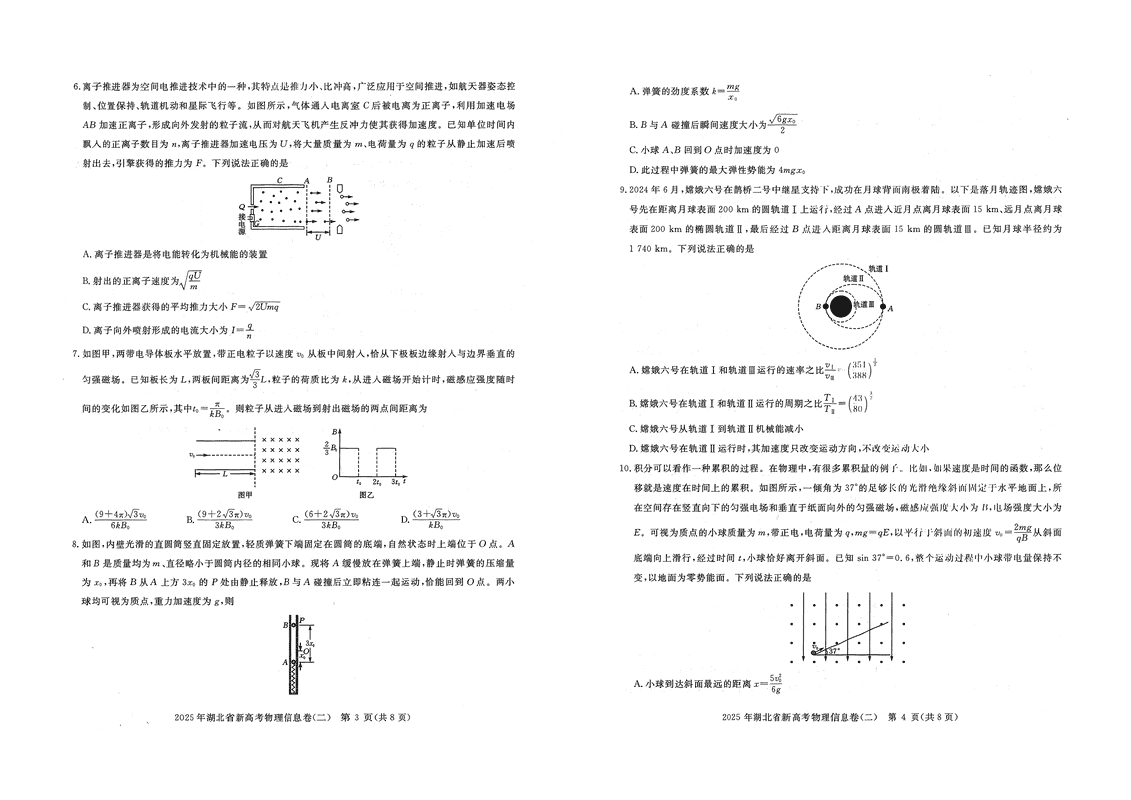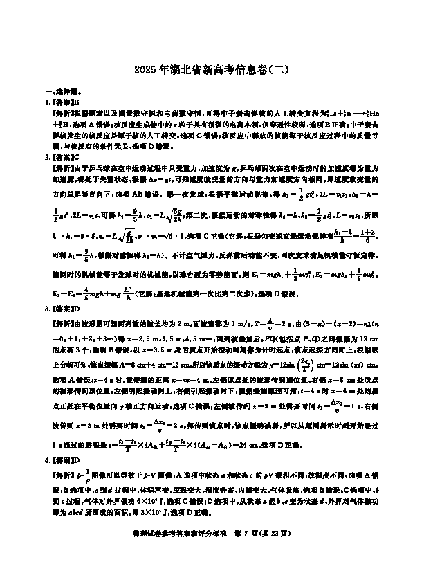 2025年湖北省新高考信息卷(二)物理试题及答案 时间:2025-05-14 湖北 理综试题 2025年湖北省新高考信息卷(二)物理考试已于近日开考,为方便考生考后及时查看考试情况,查漏补缺、弥补不足,本文整理了试题答案解析相关信息! 汇总:2025年湖北省新高考信息卷(二)试题及答案汇总 物理试题及答案解析