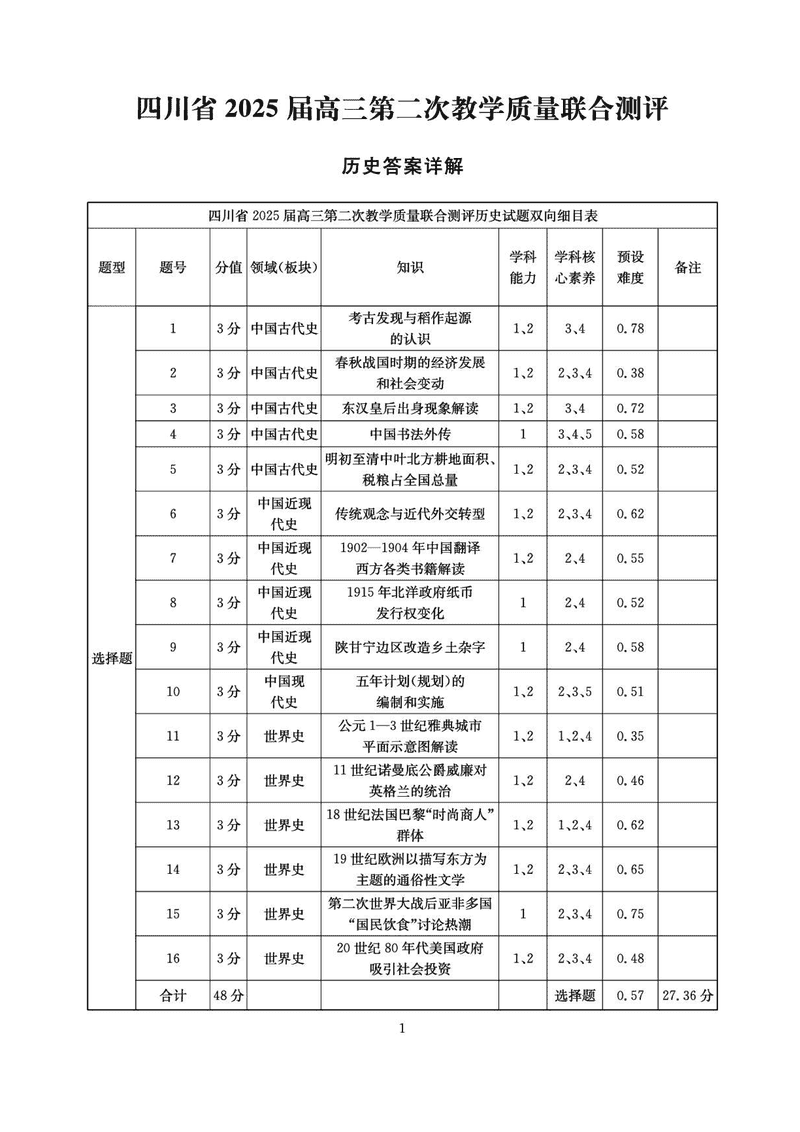 2025届四川高三第二次教学质量联合测评历史考试已于近日开考,为方便考生考后及时查看考试情况,查漏补缺、弥补不足,本文整理了试题答案解析相关信息!