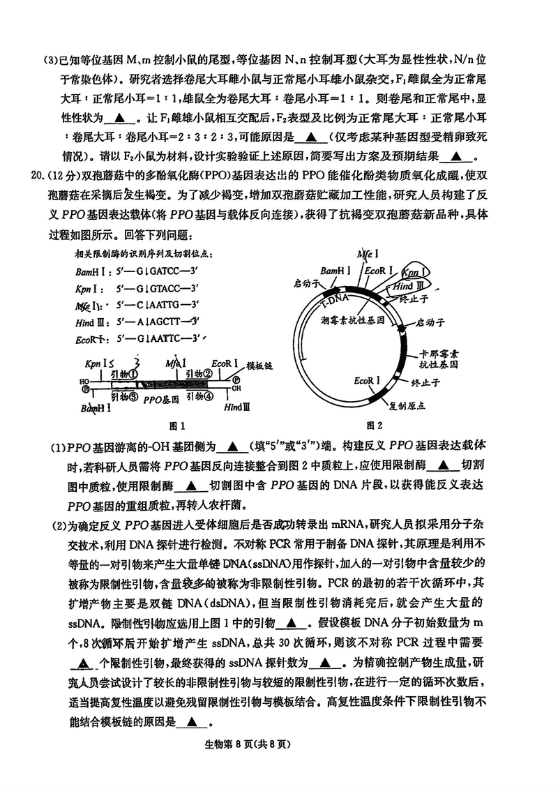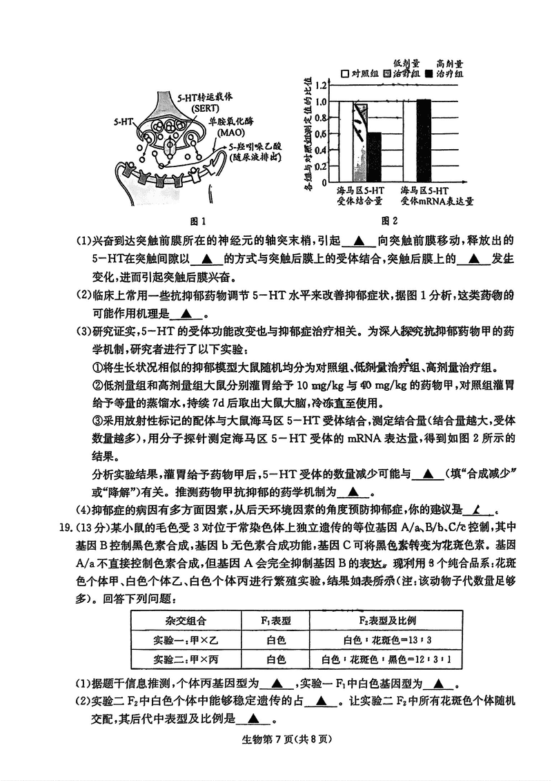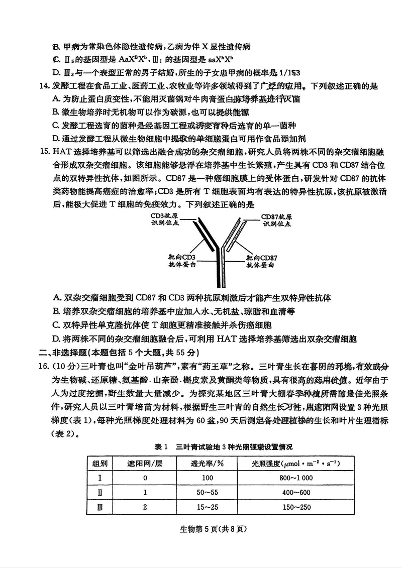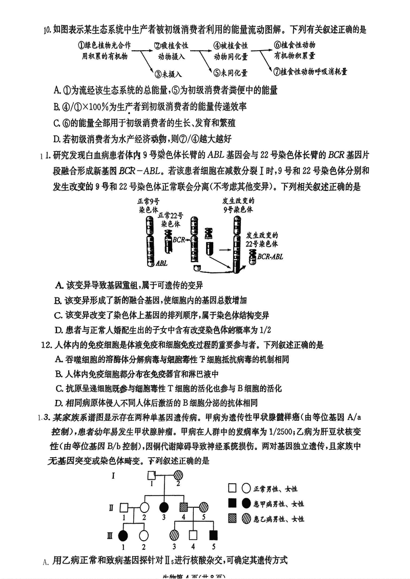 2025届四川高三第二次教学质量联合测评生物试题及答案