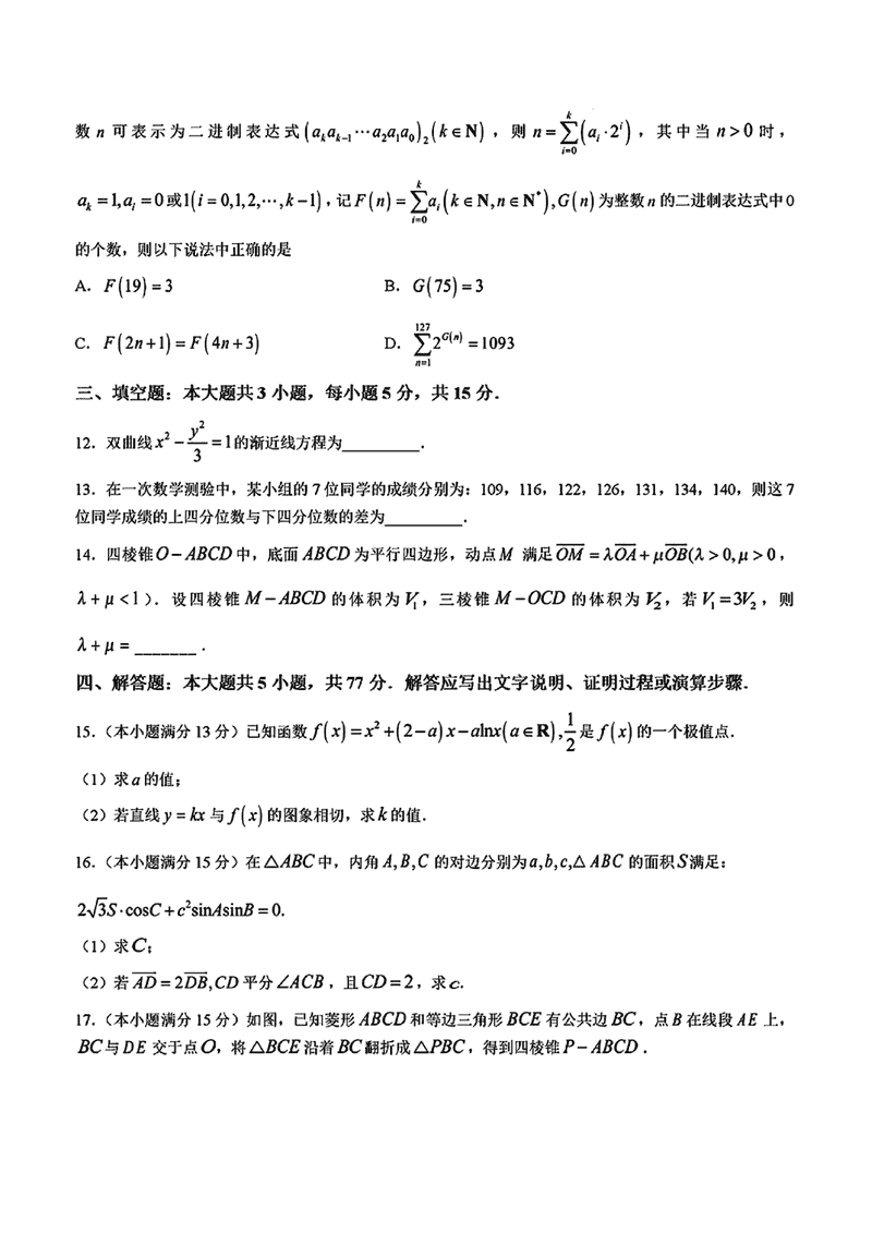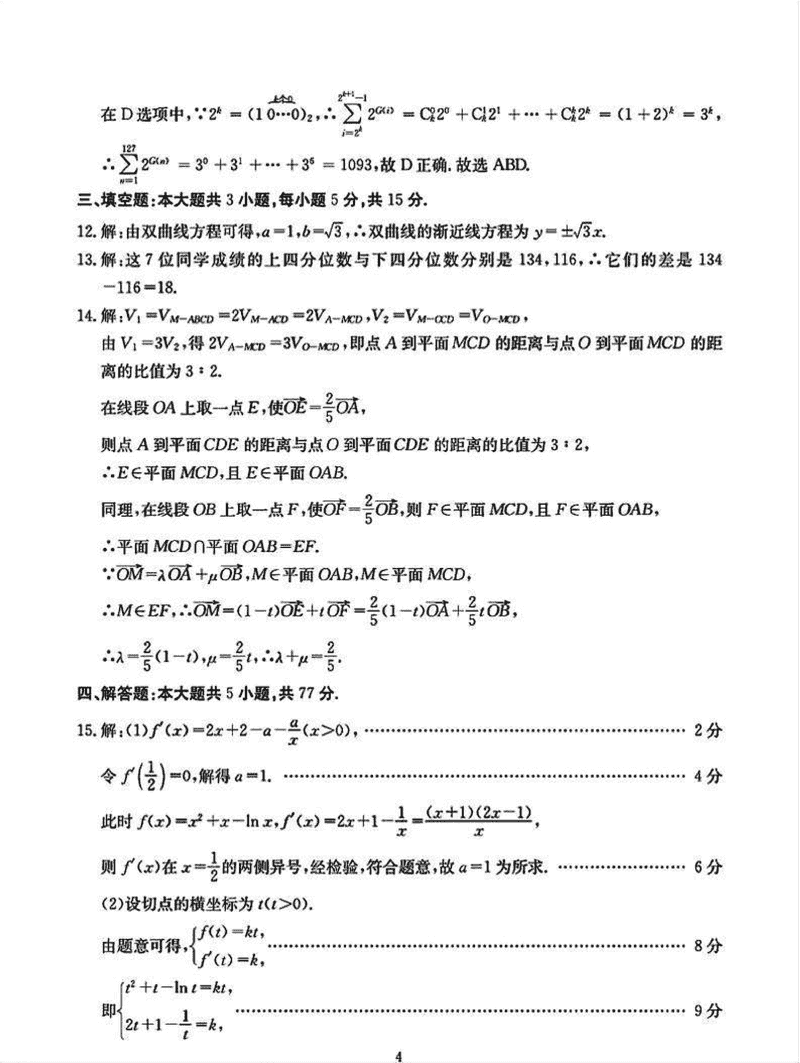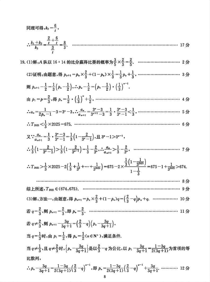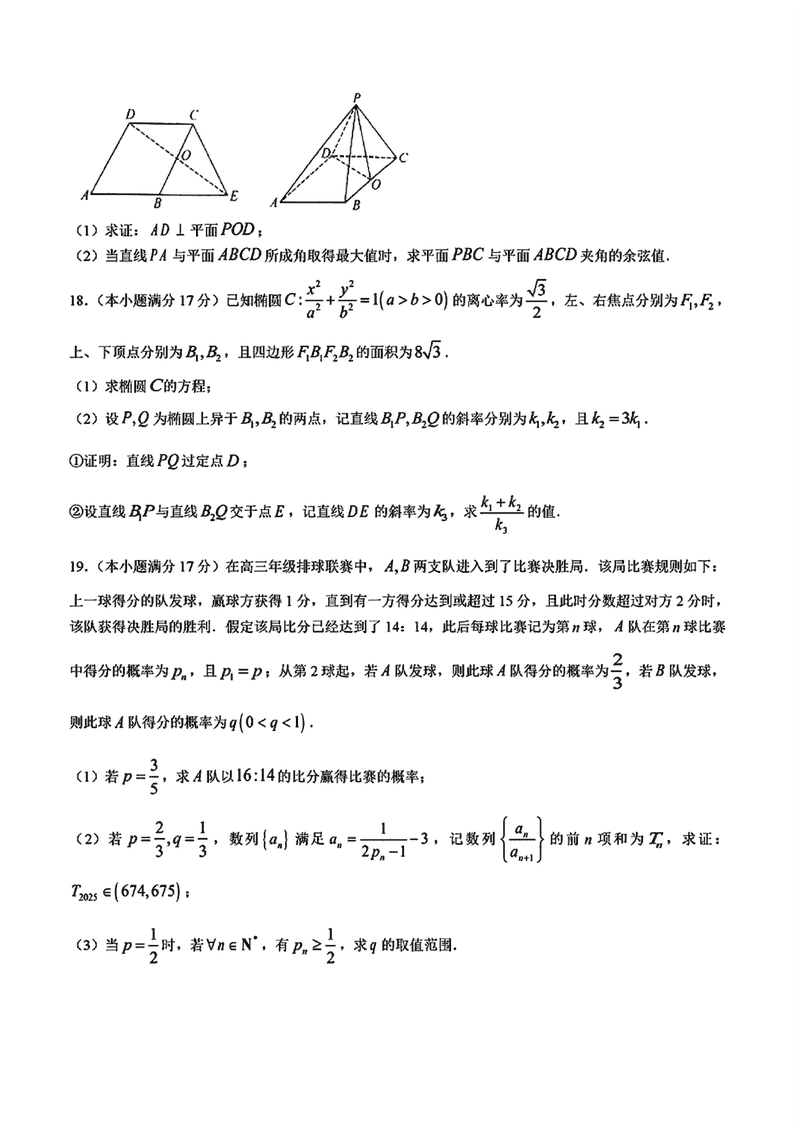 2025届四川高三第二次教学质量联合测评数学试题及答案