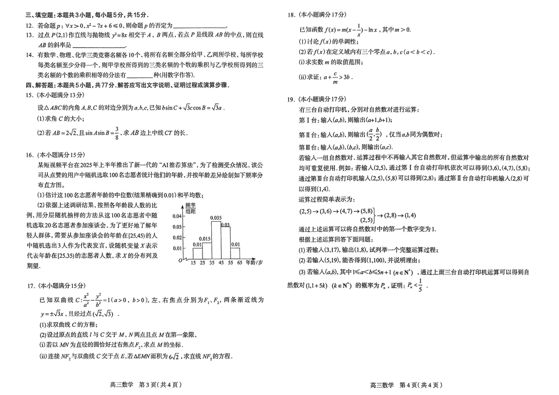 石家庄三模2025届高三教学质检三数学试题及答案 时间:2025-05-15 河北 数学试题 石家庄三模2025届高三教学质量检测三数学考试已于近日开考,为方便考生考后及时查看考试情况,查漏补缺、弥补不足,本文整理了试题答案解析相关信息! 汇总:石家庄三模2025届高三教学质量检测三试题及答案汇总 数学试题及答案解析