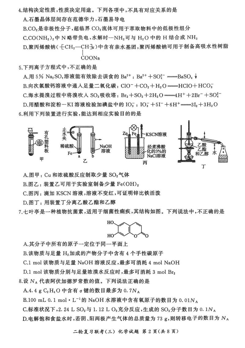 2025届百师联盟高三二轮复习联考(三)化学试题及答案