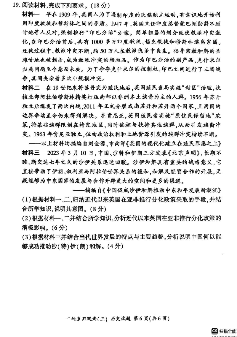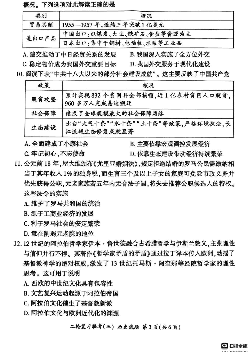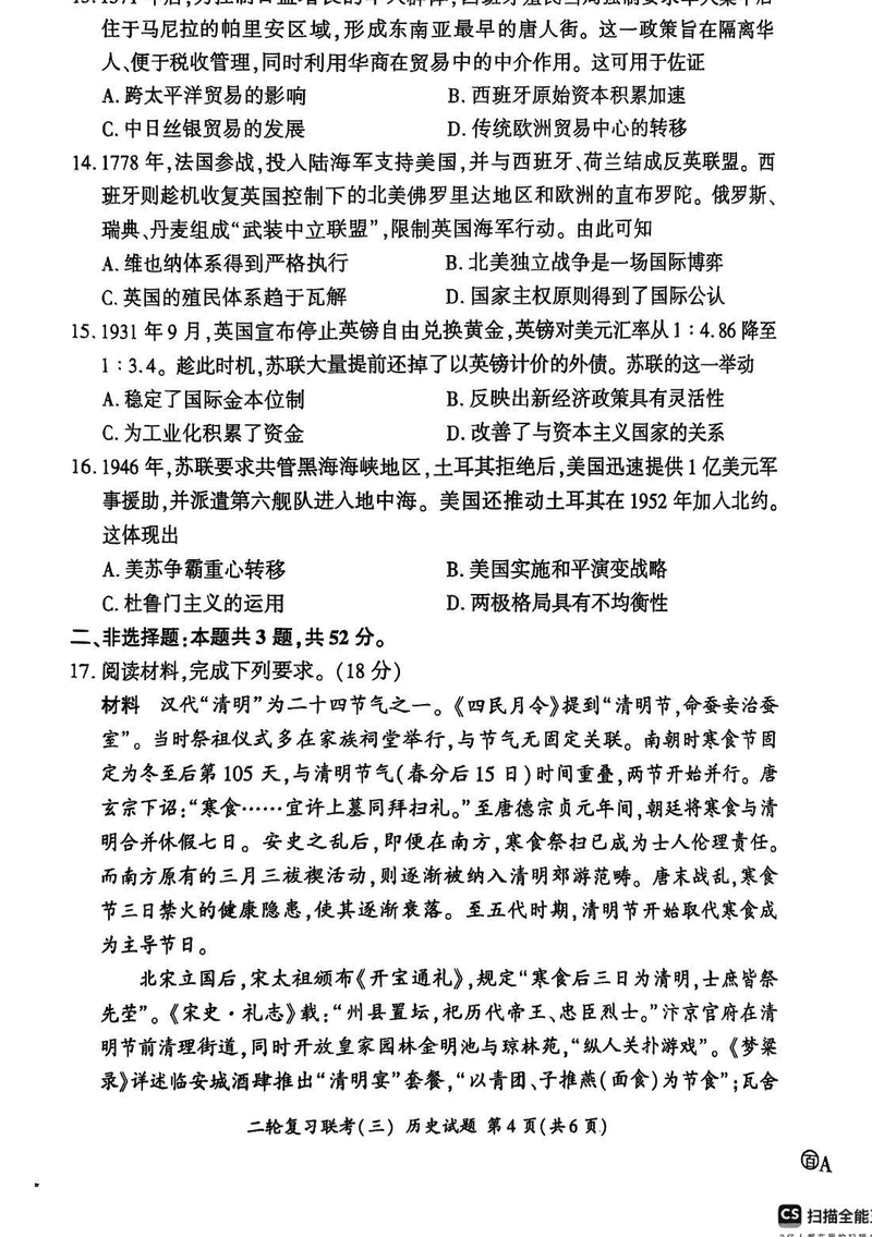 2025届百师联盟高三二轮复习联考(三)历史试题及答案