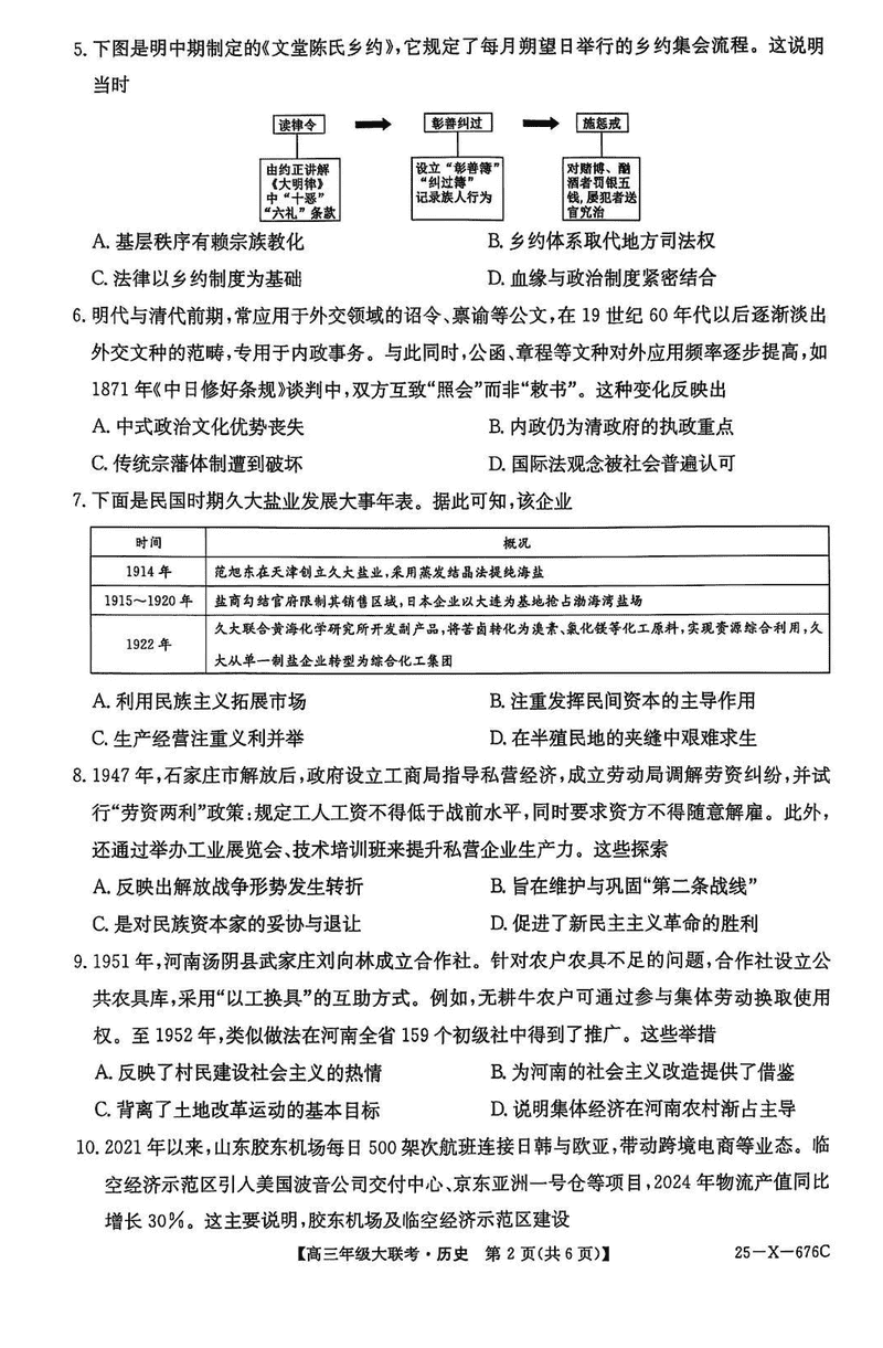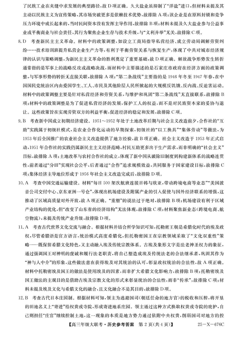 河南TOP二十名校2025届高三猜题大联考历史试题及答案
