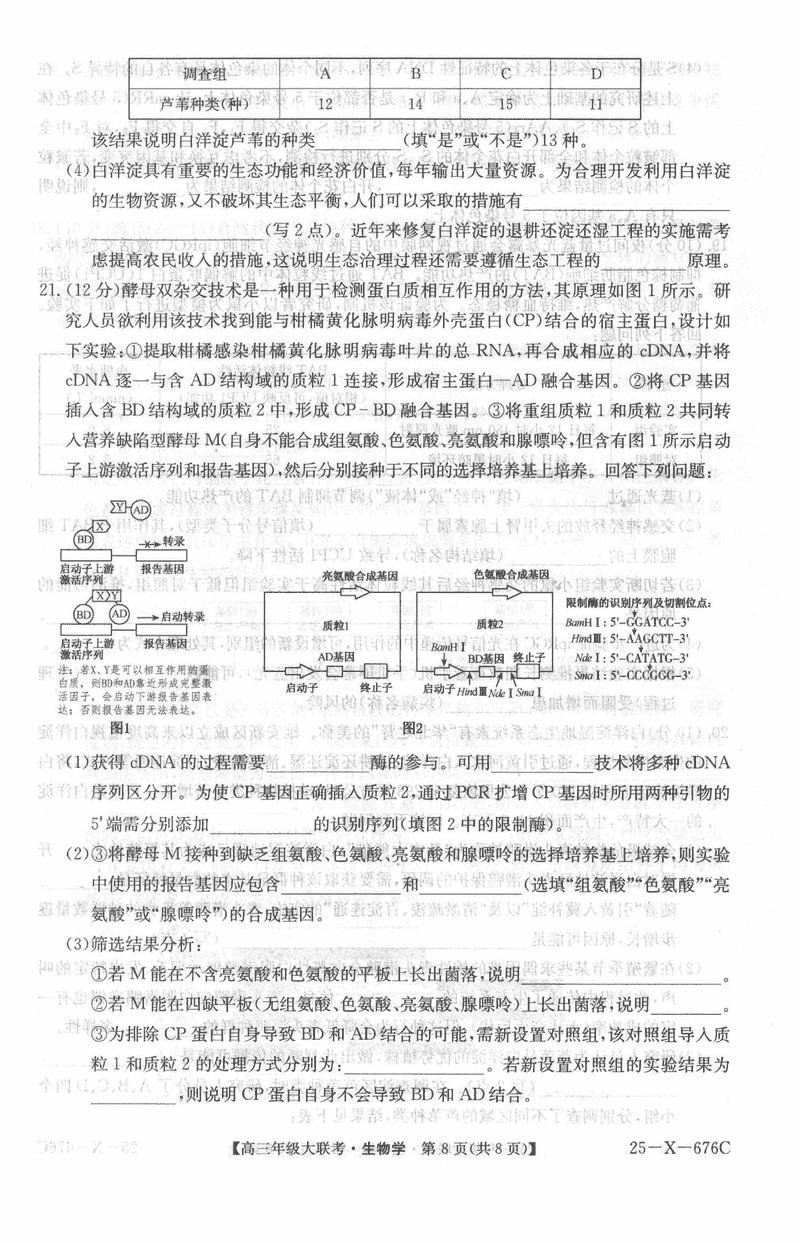 河南TOP二十名校2025届高三猜题大联考生物考试已于近日开考,为方便考生考后及时查看考试情况,查漏补缺、弥补不足,本文整理了试题答案解析相关信息!