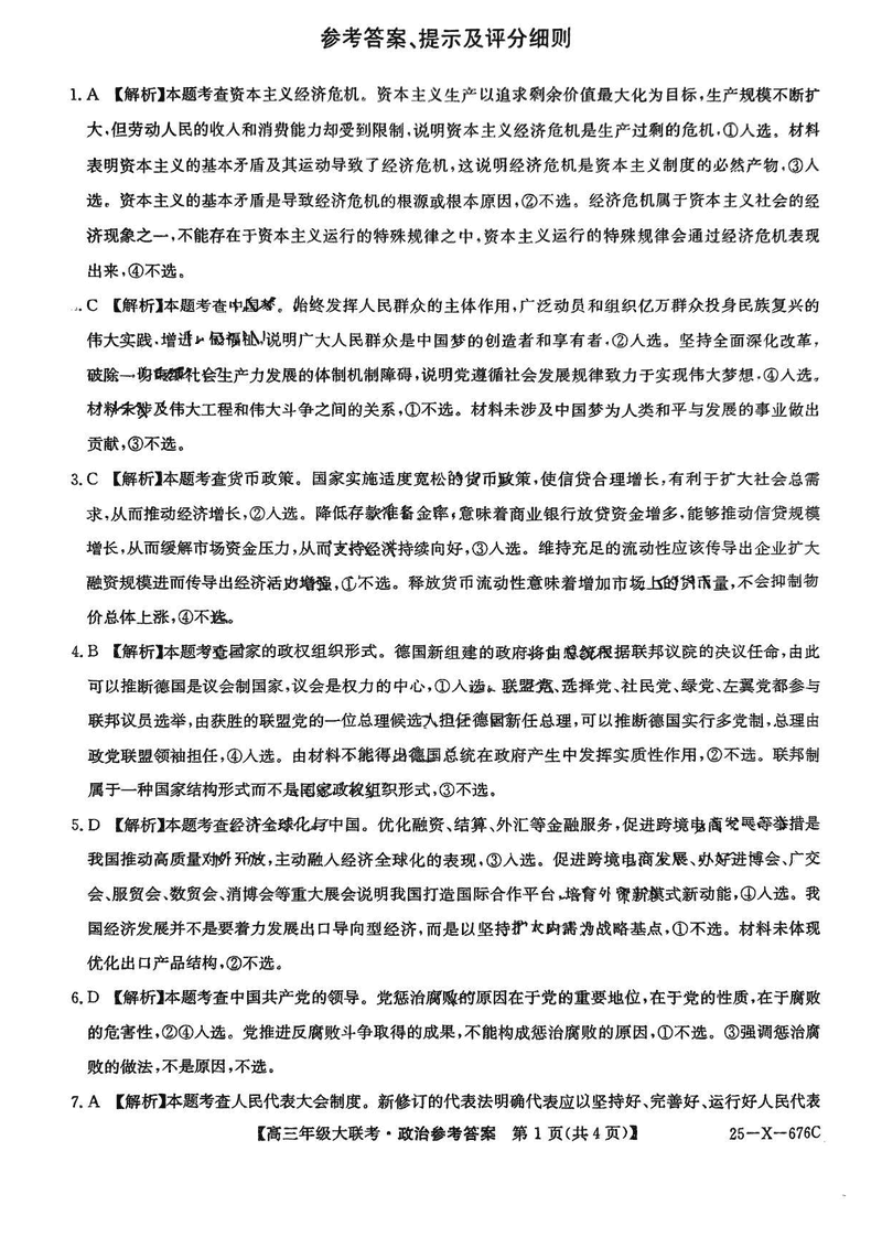 河南TOP二十名校2025届高三猜题大联考政治试题及答案