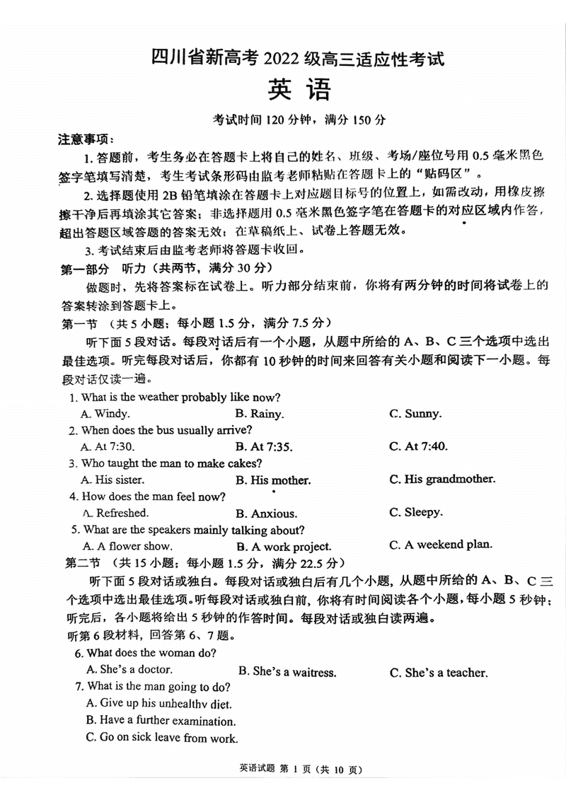 四川蓉城名校联盟新高考2025届高三5月适应性考英语考试已于近日开考,为方便考生考后及时查看考试情况,查漏补缺、弥补不足,本文整理了试题答案解析相关信息!