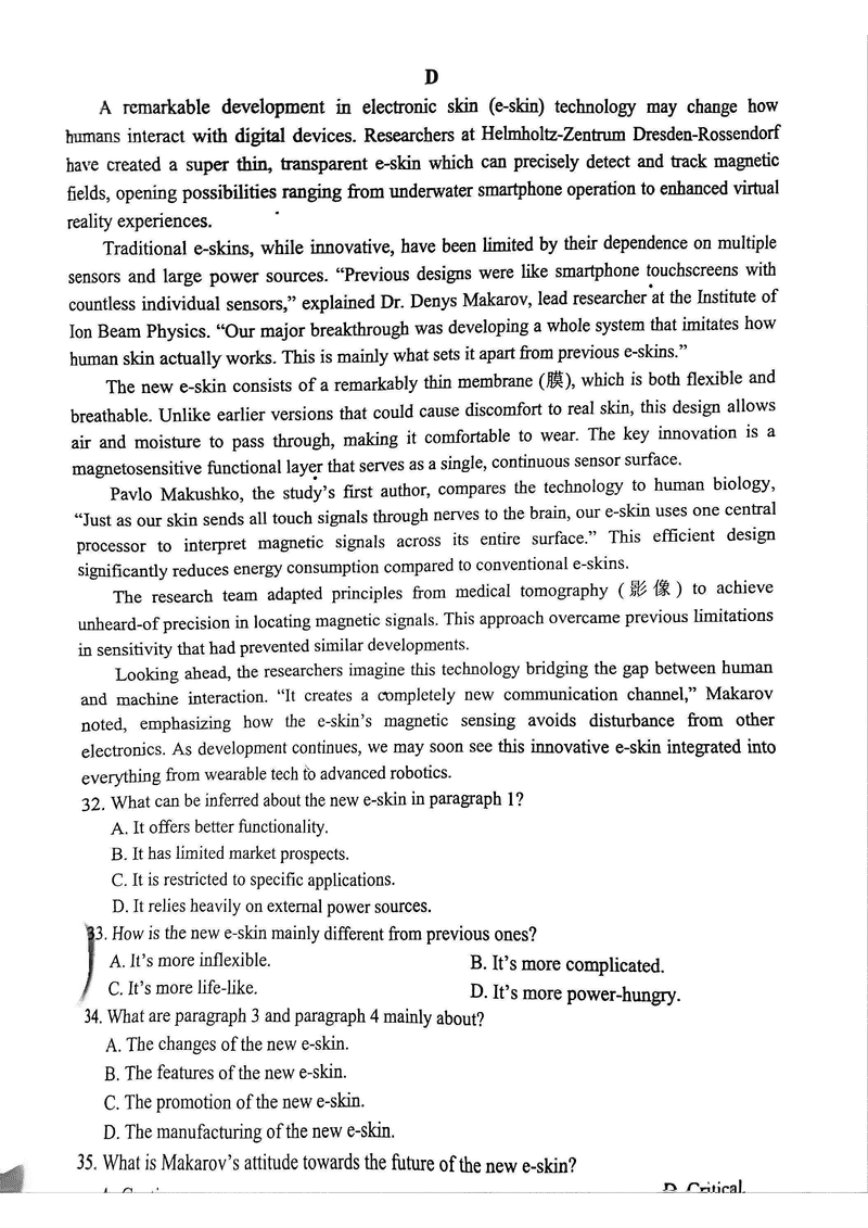 四川蓉城名校联盟新高考2025届高三5月适应性考英语试题及答案