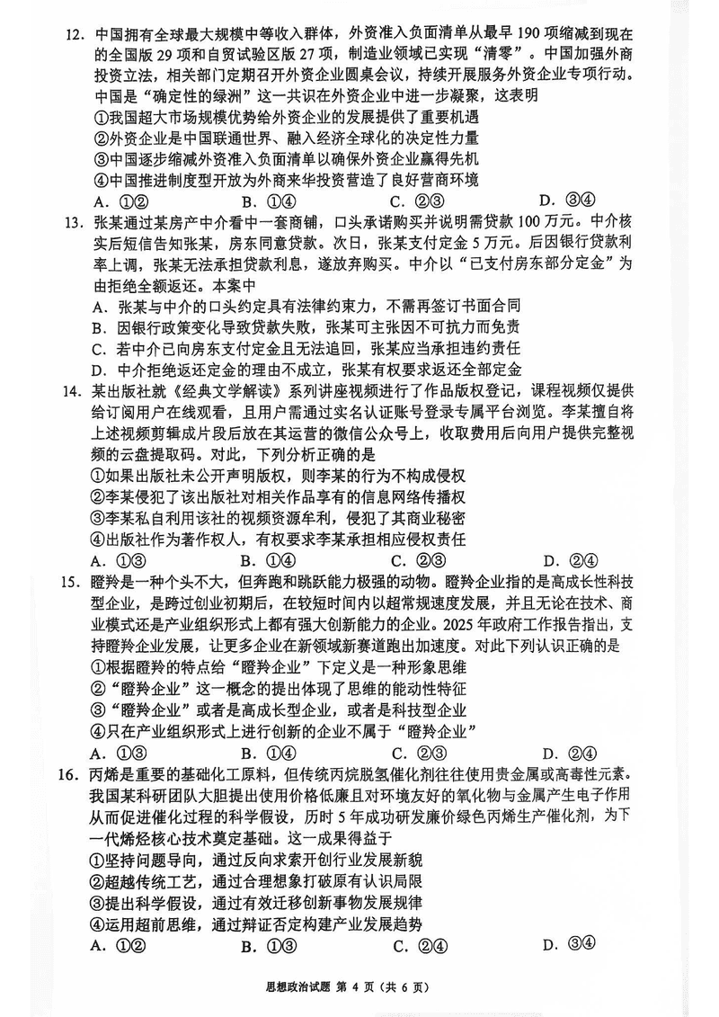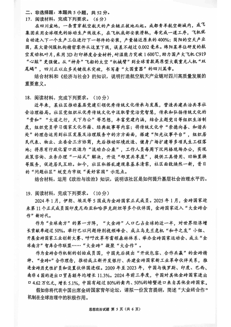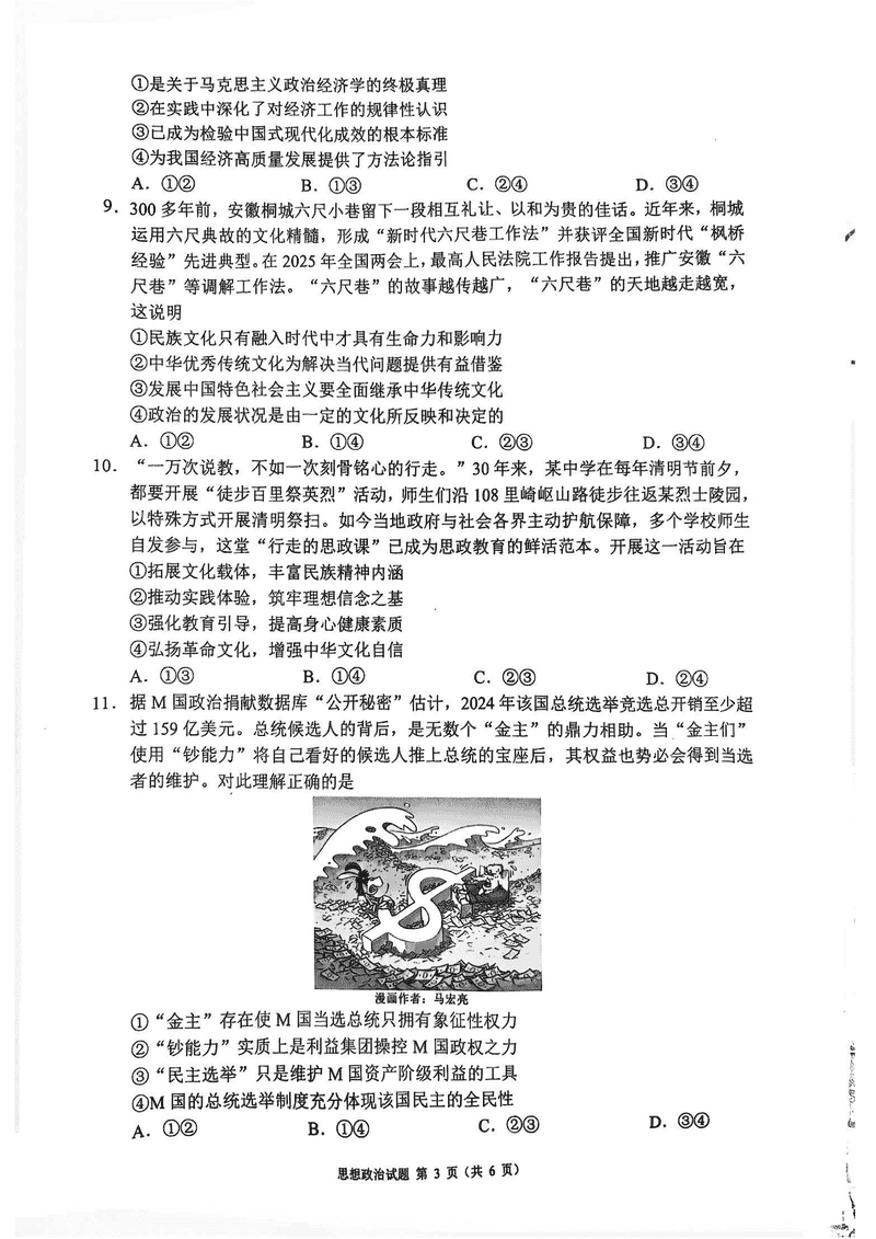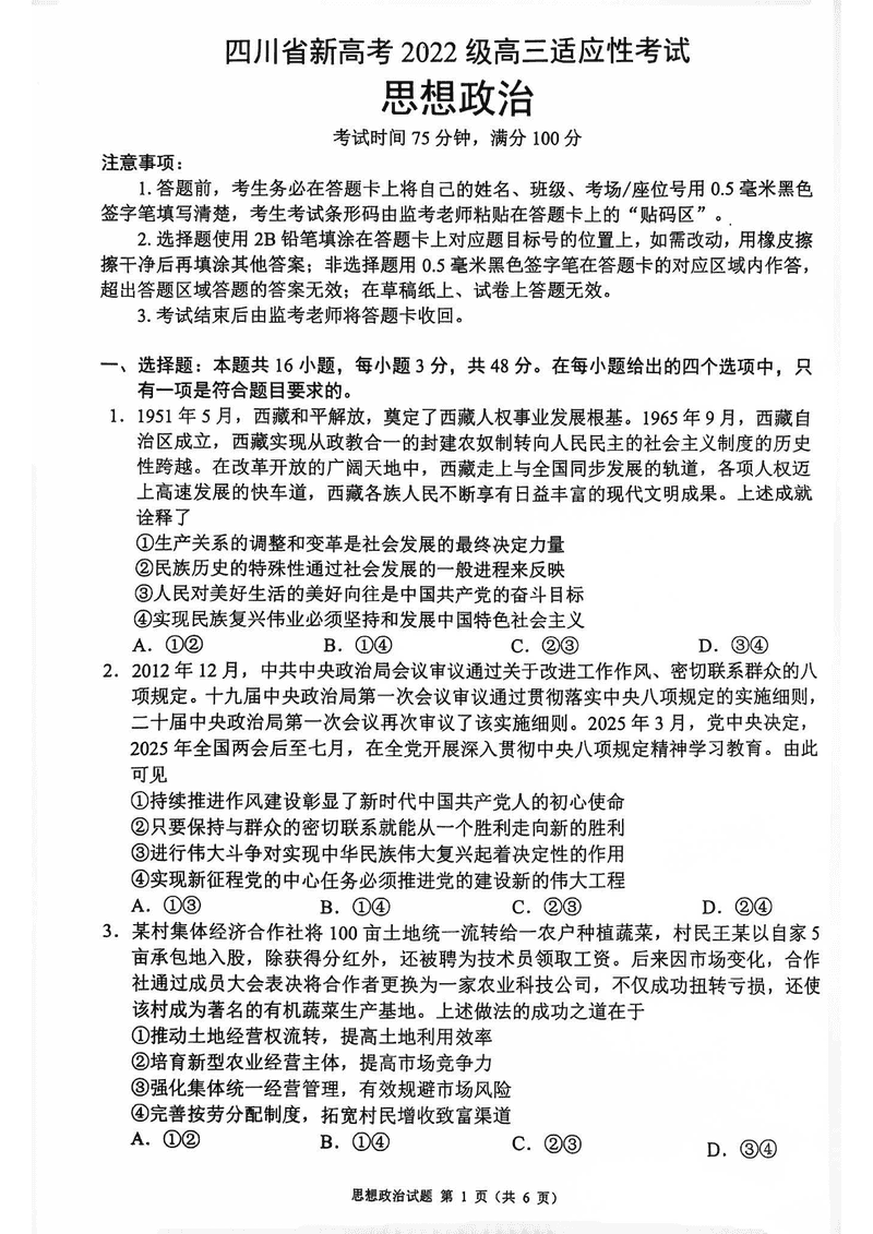 四川蓉城名校联盟新高考2025届高三5月适应性考政治试题及答案