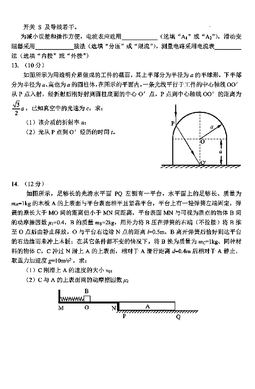 东北师大附中2025高三下学期第四次模考物理试题及答案