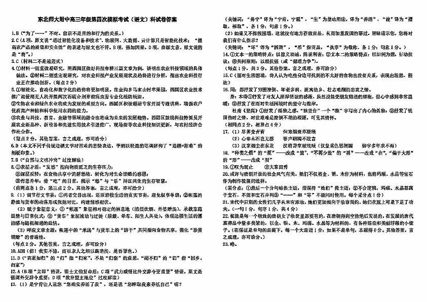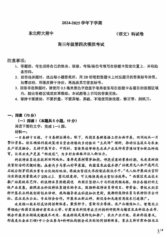 东北师大附中2025高三下学期第四次模考语文考试已于近日开考,为方便考生考后及时查看考试情况,查漏补缺、弥补不足,本文整理了试题答案解析相关信息!