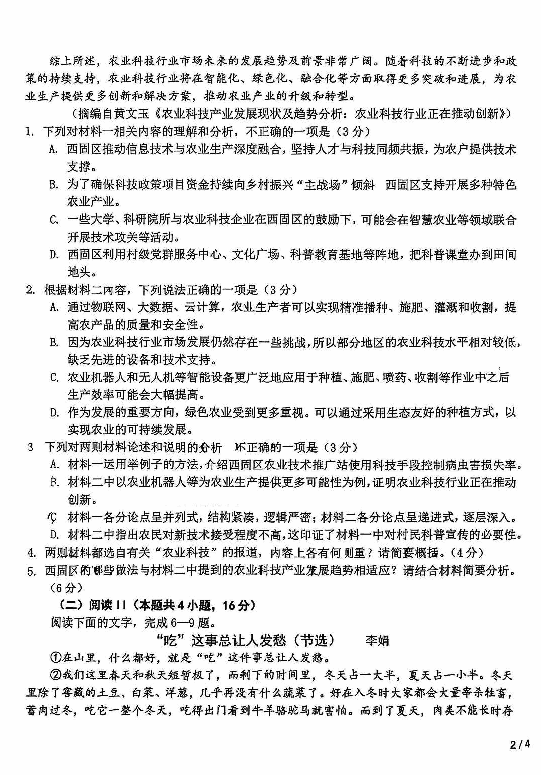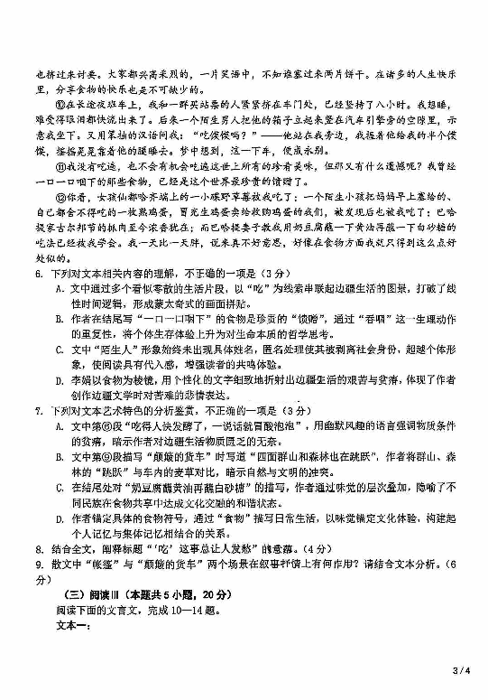 东北师大附中2025高三下学期第四次模考语文试题及答案